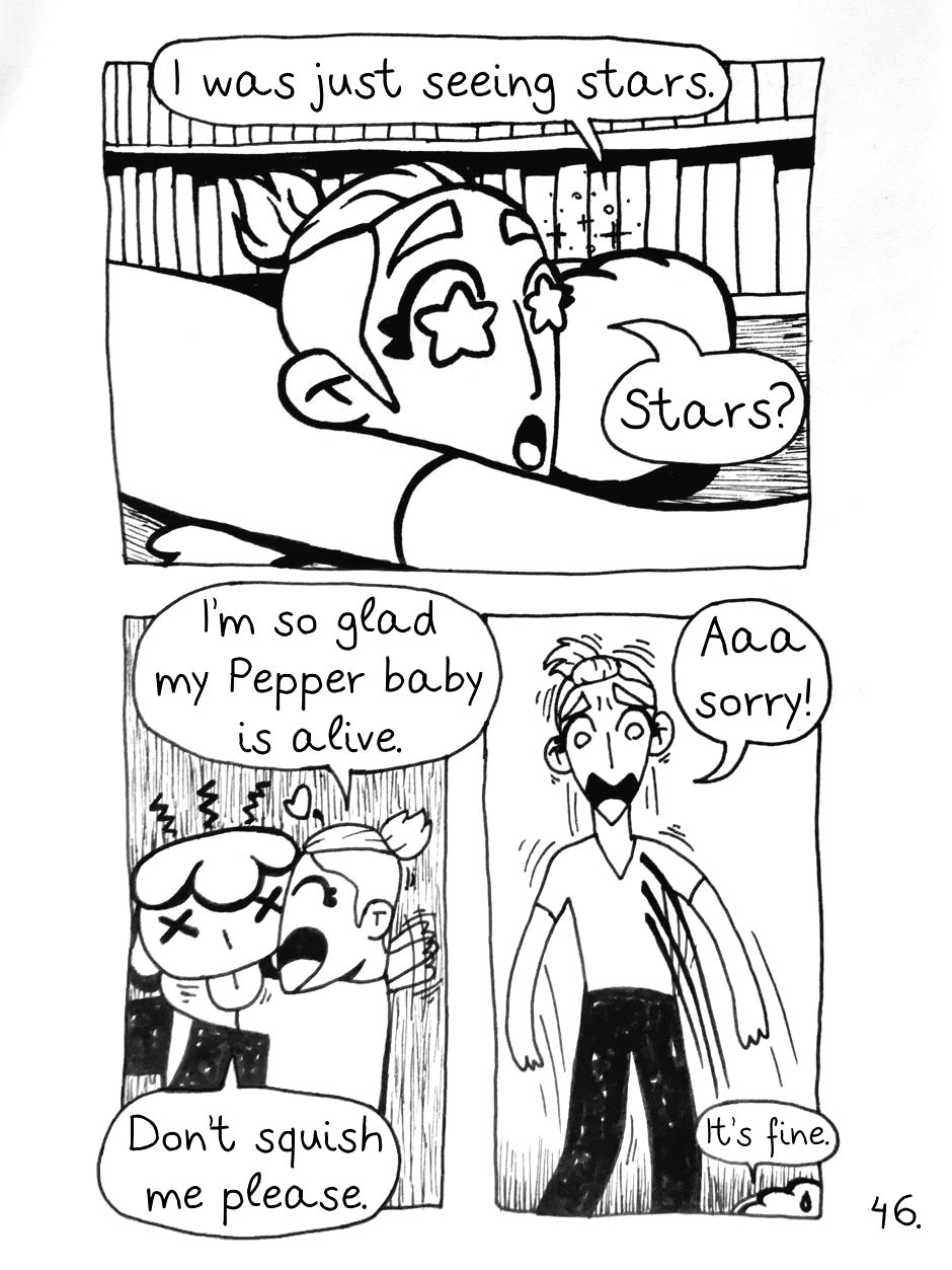 Pepper's first day at their new school is filled with excitement and anxiety. Meeting new people and situations is quite a challenge for them so how will they handle it all? This story is about queer kids on their journey through gender crisis and high school stuggles with a bit of magic…