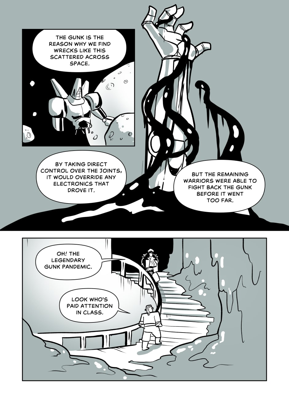 Created during Oslo Comic Expo's 24 hour comic marathon, while being sleep deprived from the very start. I'm personally surprised by how coherent it ended up being in the end, even if the artwork is a lot less clean than I'd like it. I am very happy with how it turned out in the end though, and I hope you like it too!