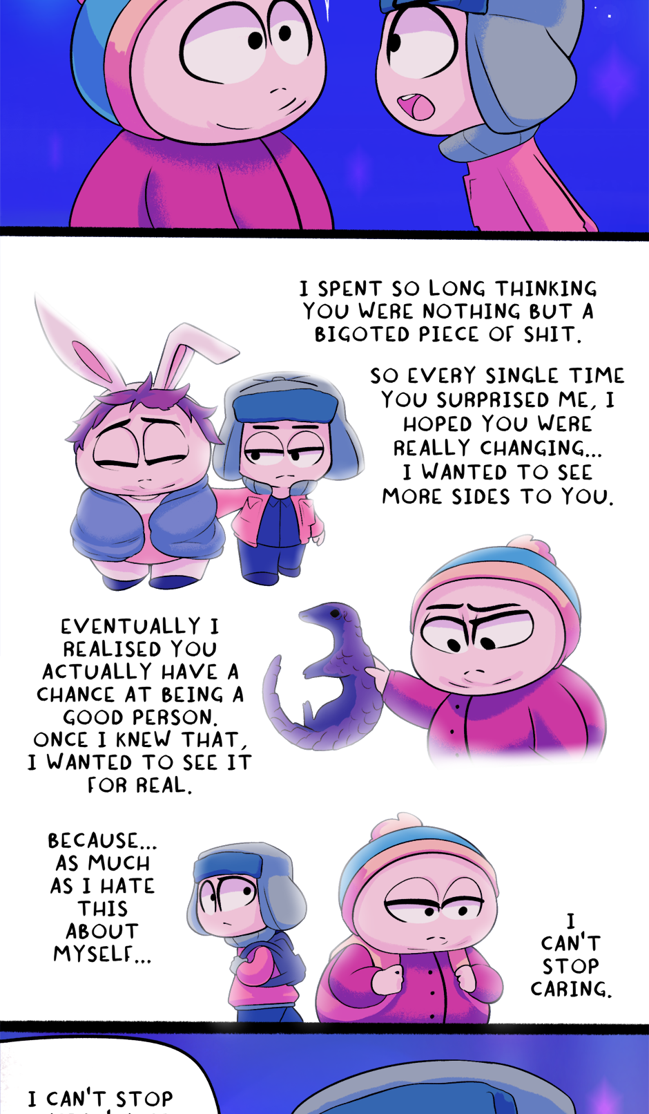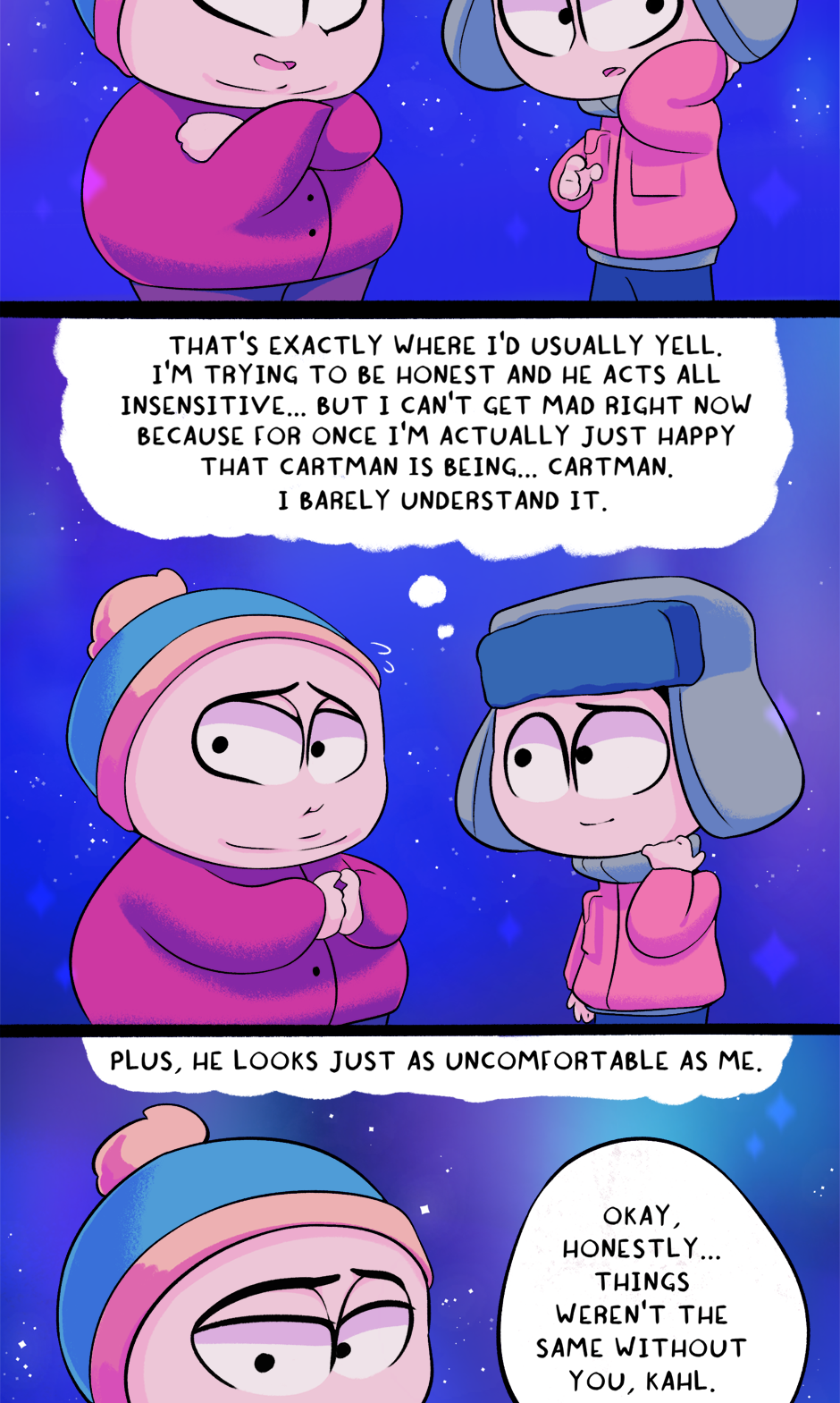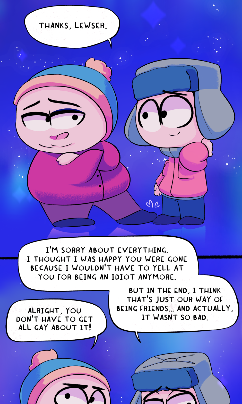A story that works through the emotional and personal problems between Kyle and Cartman in a way that would never be possible in the show.