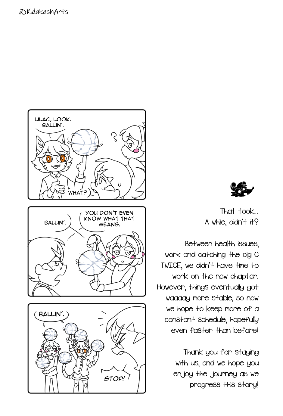 Thank you everyone for your patience! We're back!! And we're ballin'!!!!!!! Twitter: https://twitter.com/KidakashArts