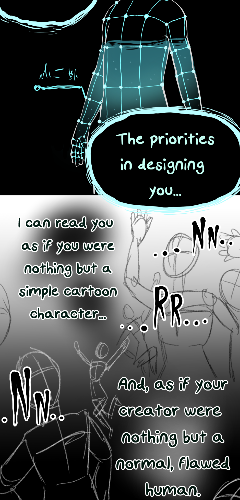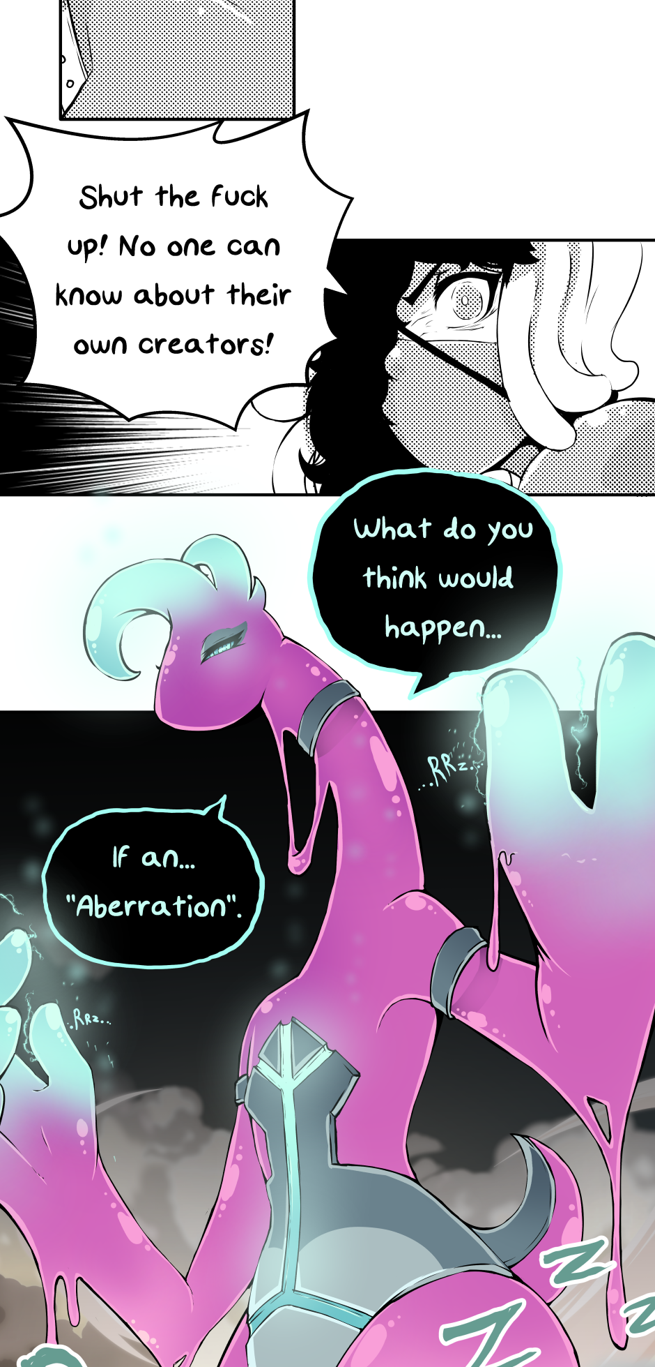 "Sin" an amorphous monster of mystery goes on a journey of revenge after gaining an acute understanding of the fact, that she is simply a character created for the entertainment of her "Creator".