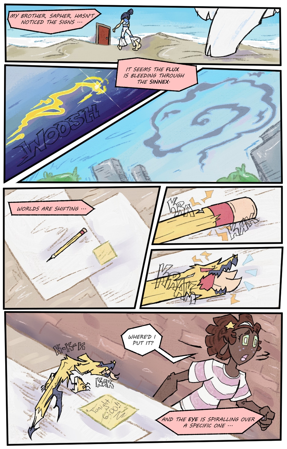 Follow a young women, Pacifica Dewey, and a young man, Sapher Dawn, in a surreal universe full of strange beasts and rule breaking physics.