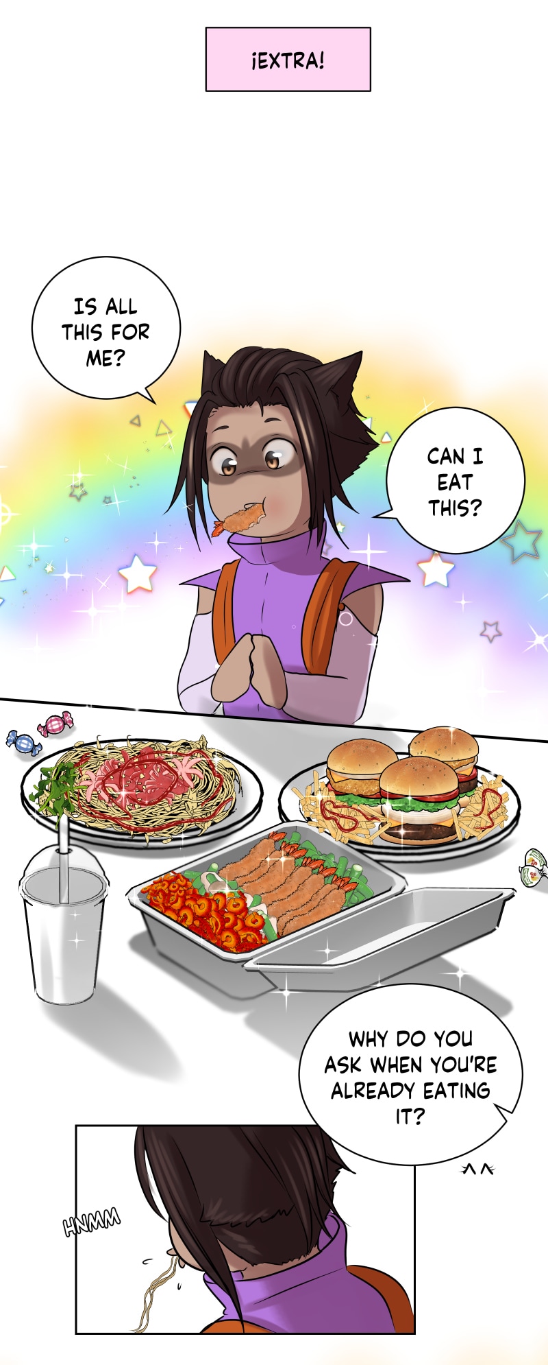 Jaed is an art student who is always hungry. One day, looking for food, he ended up sneaking into a extra's casting, where more than food, he gets a role which ends up getting him involved in a filming of a serie with his idol.