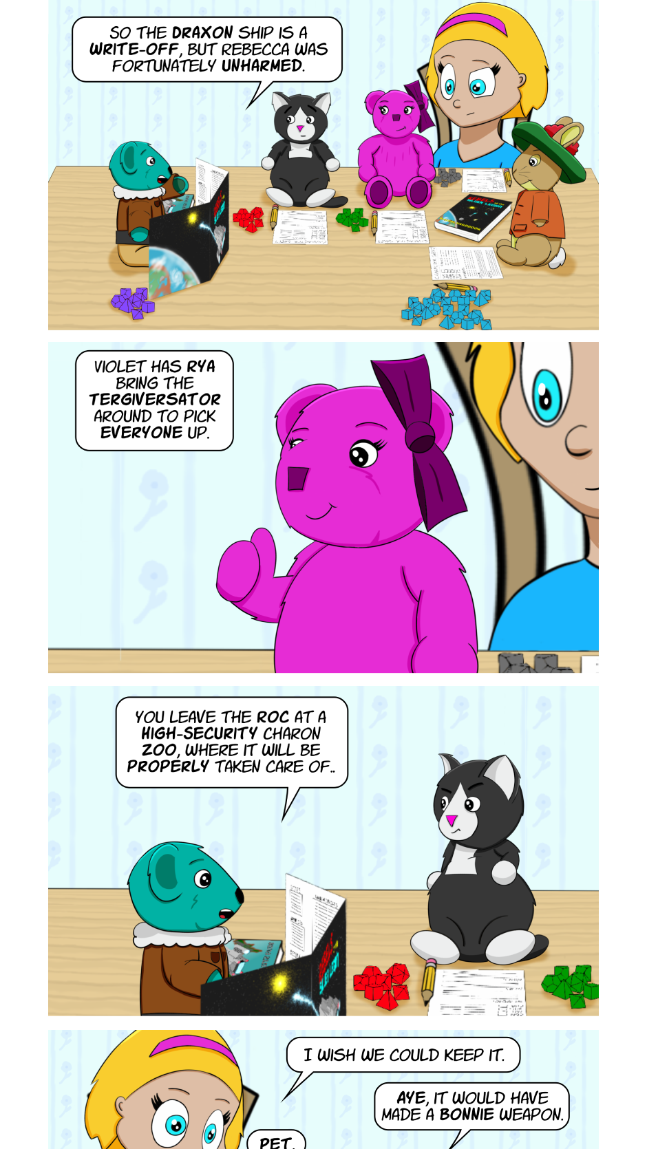 Fuzzy Knights follows the secret lives of toys, and what they do when we're not watching. Most of the time, it's playing games.