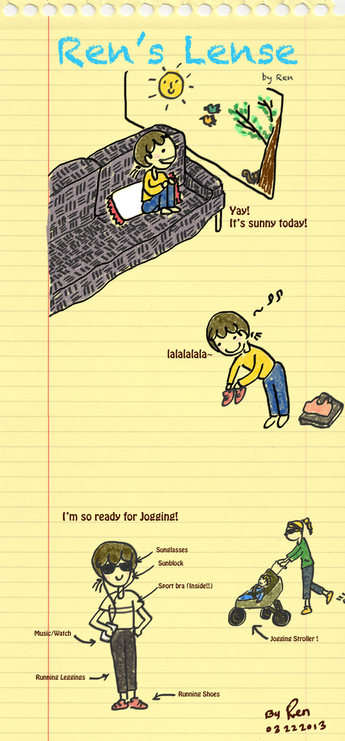 It seems to me that Americans love, or obsess about, running. Although I don't like running while it's rainy - I won't be able to enjoy jogging if holding an umbrella and wearing heavy rain boots - I do love running when the day is sunny like today. What a lovely day today in California. I'm about to leave for jogging after uploading my work. hee hee.