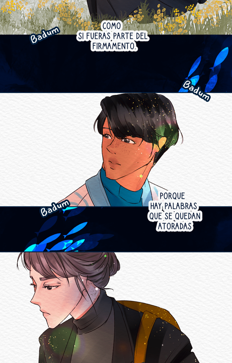 Ver a Pam y Dami tan cerca me provoca una emoción bien grande 😍🫶. Y más porque el segundo le hizo caso a las palabras de Tita 🥹❤️🩹. ¡Gracias por este bonito episodio, Karu! 🐠✨