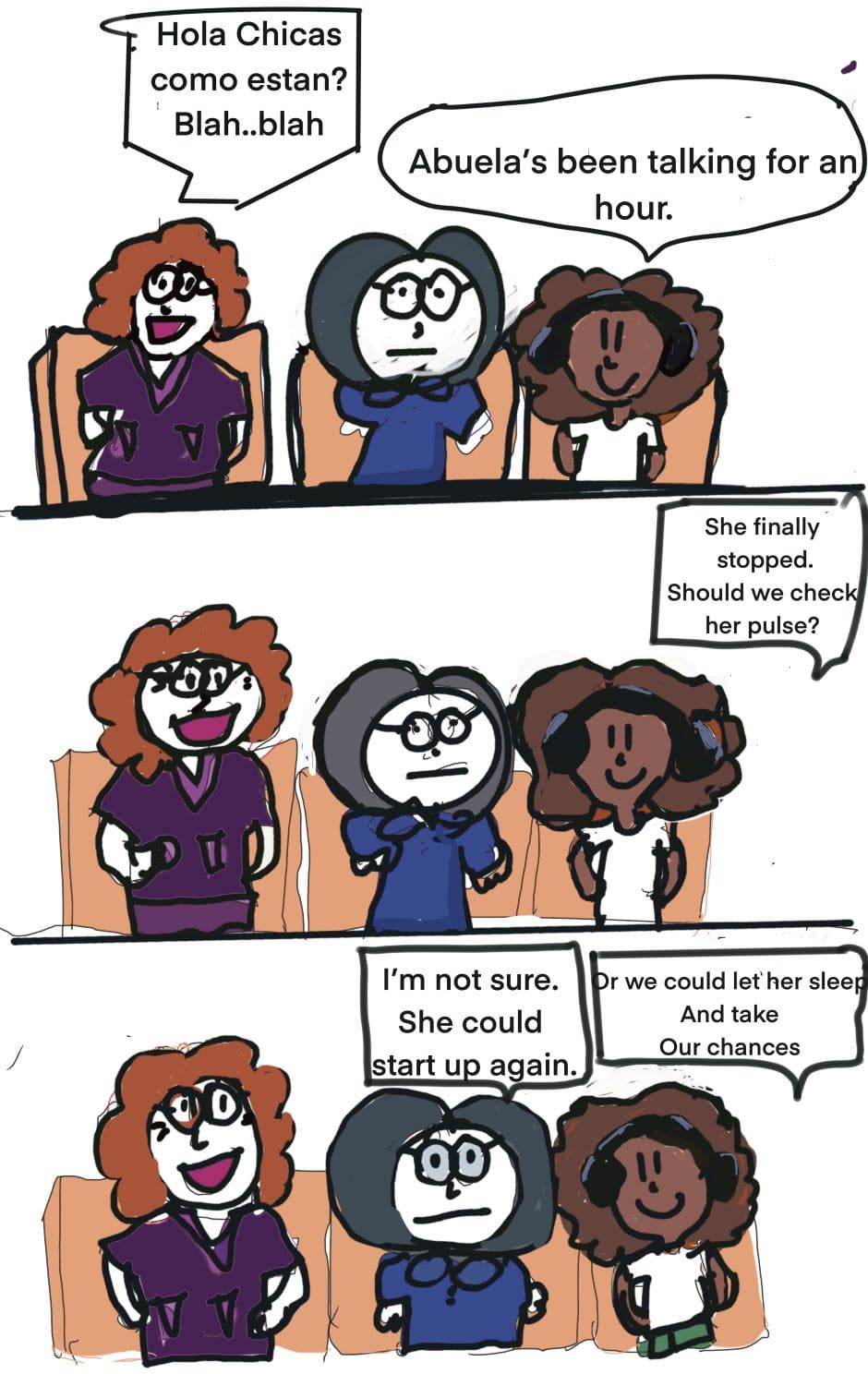 Hispanic 12-year-old, Chica lives with her overprotective mother in Texas. The visit her Abuela or get visited by her often. Abuela believes women should behave the way they did in the 1950's.