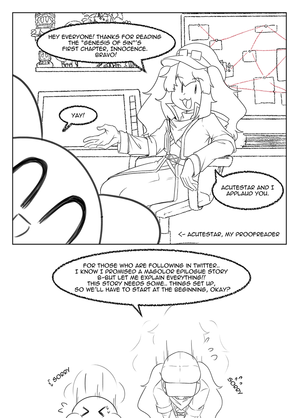 Genesis of Sin is a RTDL fancomic, focusing on the character Magolor. Believing the crown can fulfil his desires of having friends, the mage crashlands on Popstar in hopes of fooling Kirby to achieve his dreams.