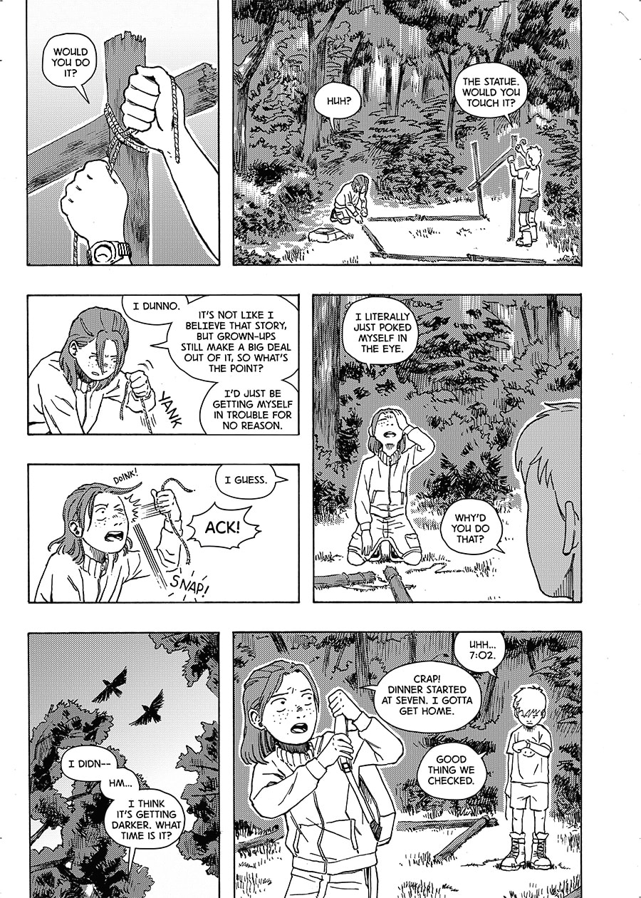 After touching an ancient stone figure on the outskirts of his hometown, 8-year-old Robin soon develops a strange affliction–When overcome with fear or anxiety, he turns to stone. 9 years later, Robin sets out on a journey to gain control of his condition, one fraught with absurd characters, surreal situations, and copious diversions.
