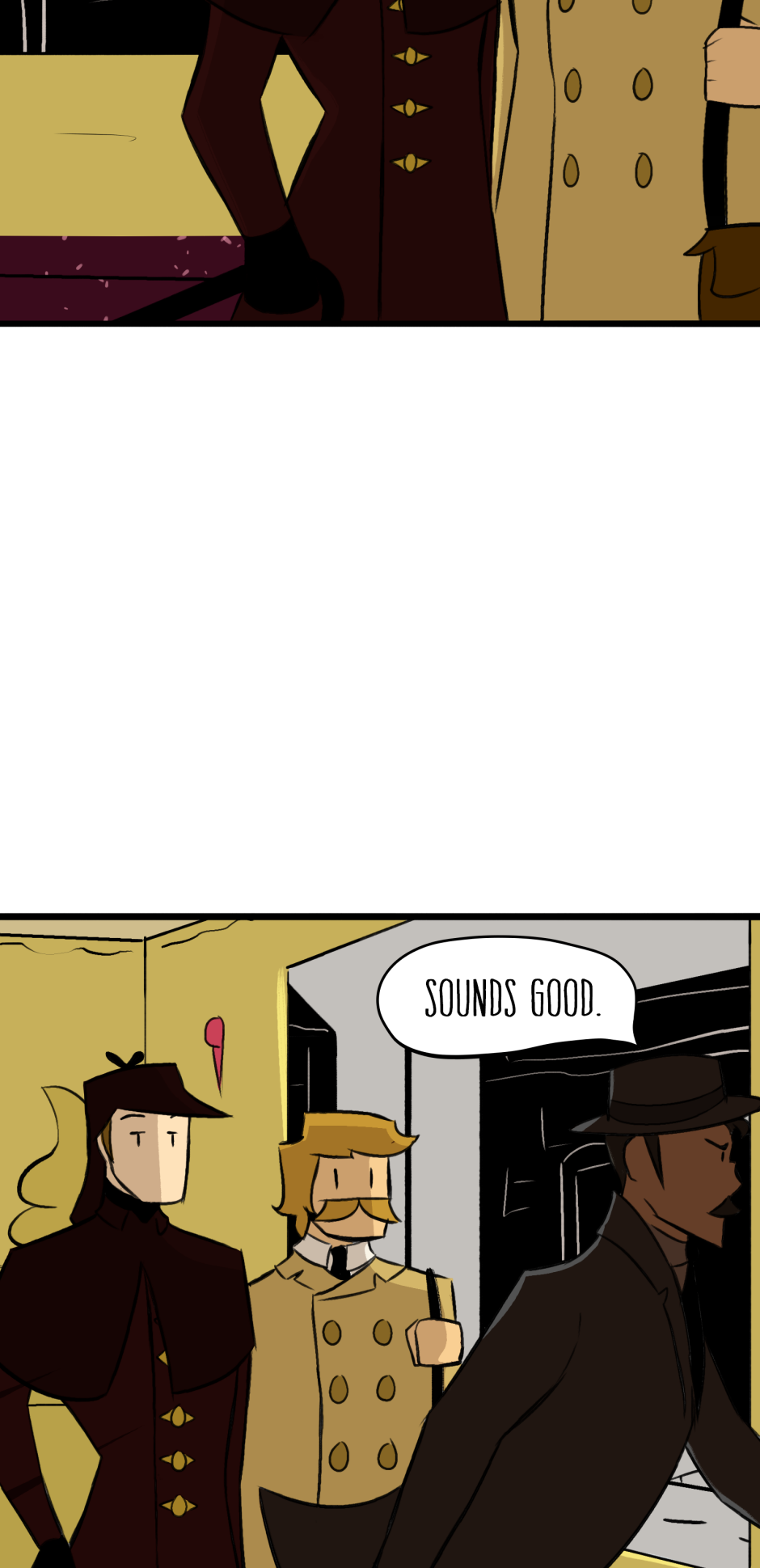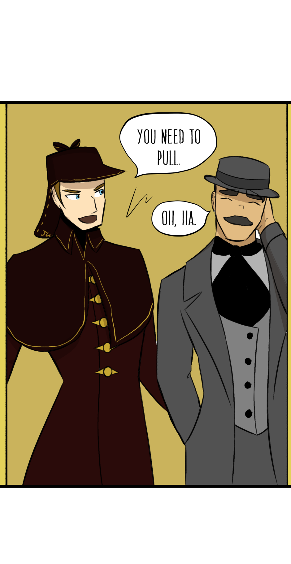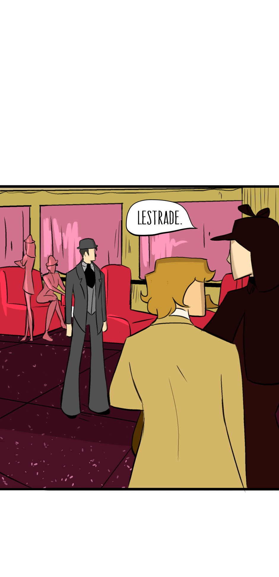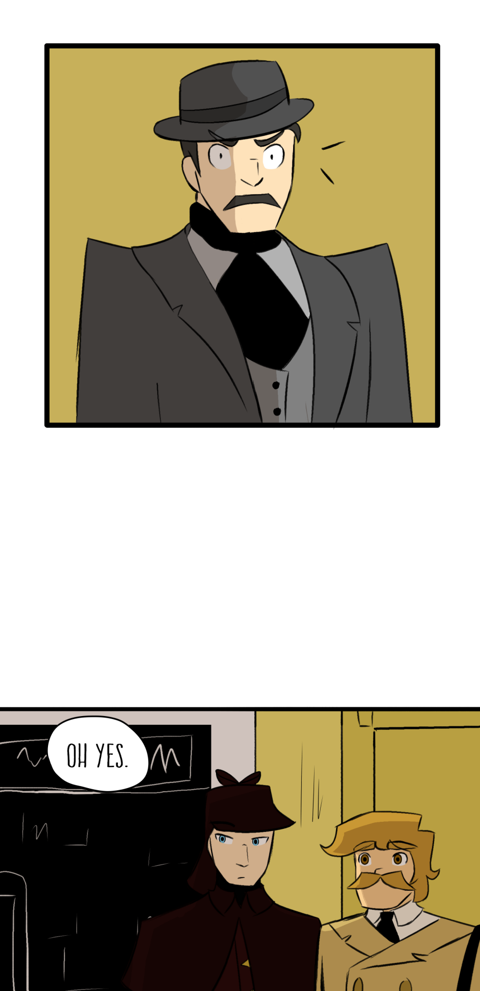 I LOVE this comics, although I do have one small note, wich may be just my opinion. And The note is, Sherlock is a more quiet person, and more calm, he wouldn't het mad at the machine like that, he would more likely look around more, but maybe that's just what I feel like, I like this comic anyway