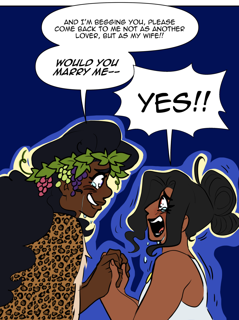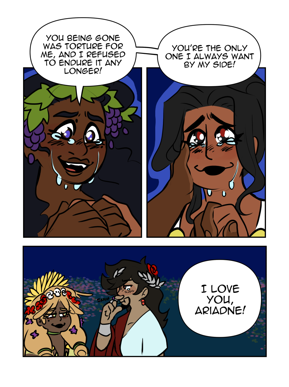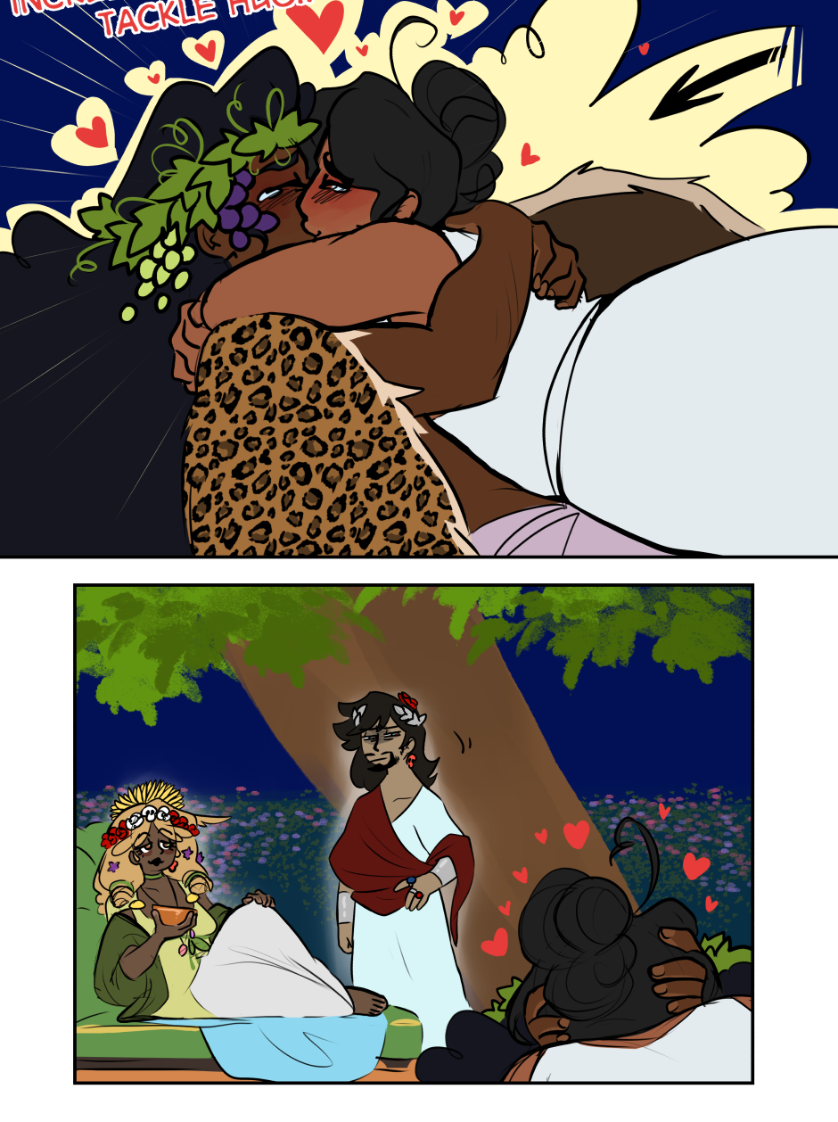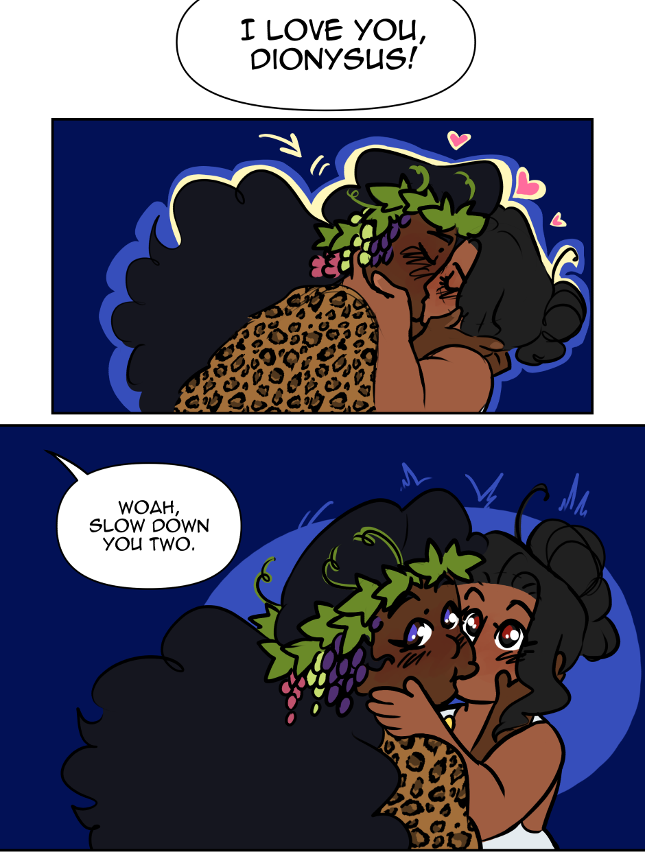 Evoe is a Queer romance taking place in modern day with the Greek Gods, Dionysus and Ariadne.