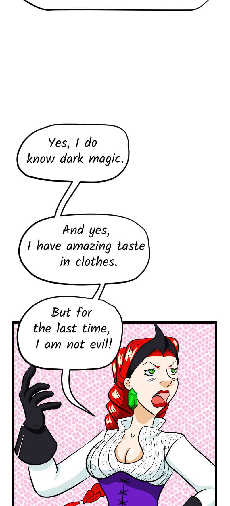 Baroness Rasputia is a dark sorceress with an orc army who rules Bloodfist, but when a group of well meaning adventurers come to depose her, our stylish heroine must figure out a way to convince them to leave her alone and instead save a village in trouble