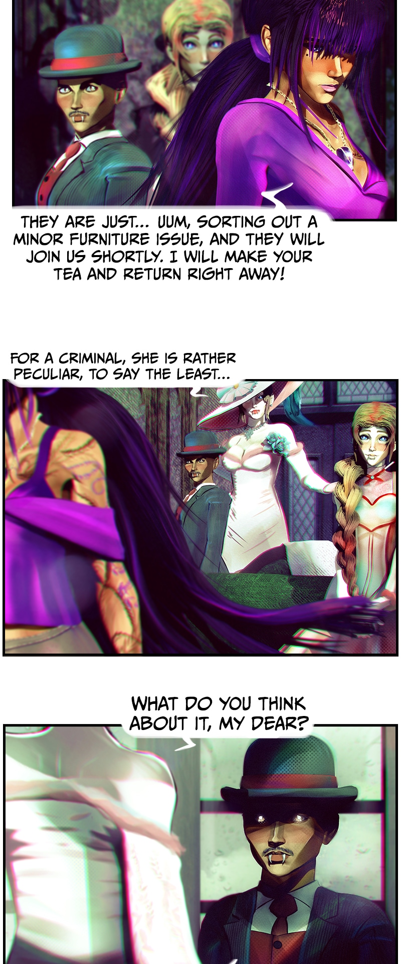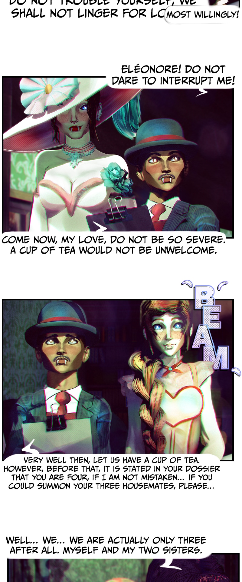 Are they vampires or....? :0 They look very interesting and suspicious to me 👀 xD I love this episode and the art as always 💕