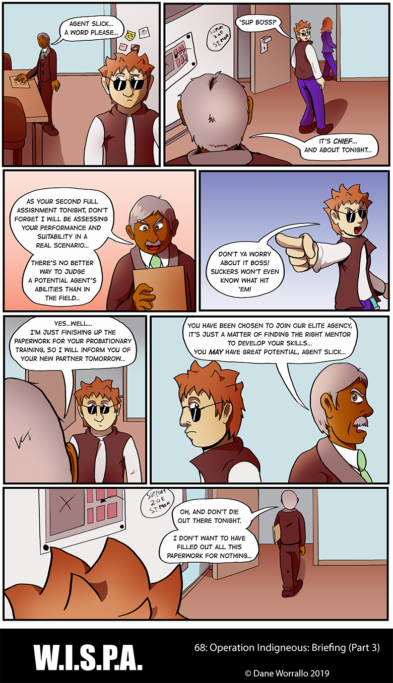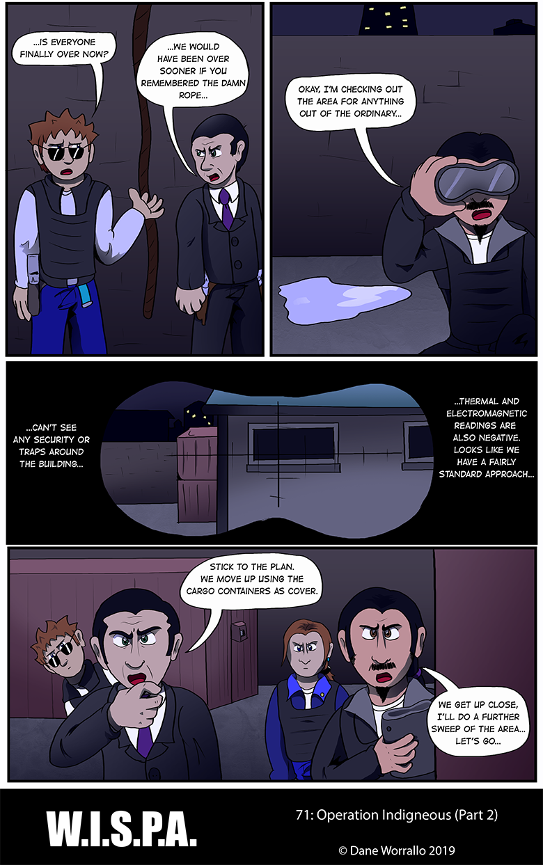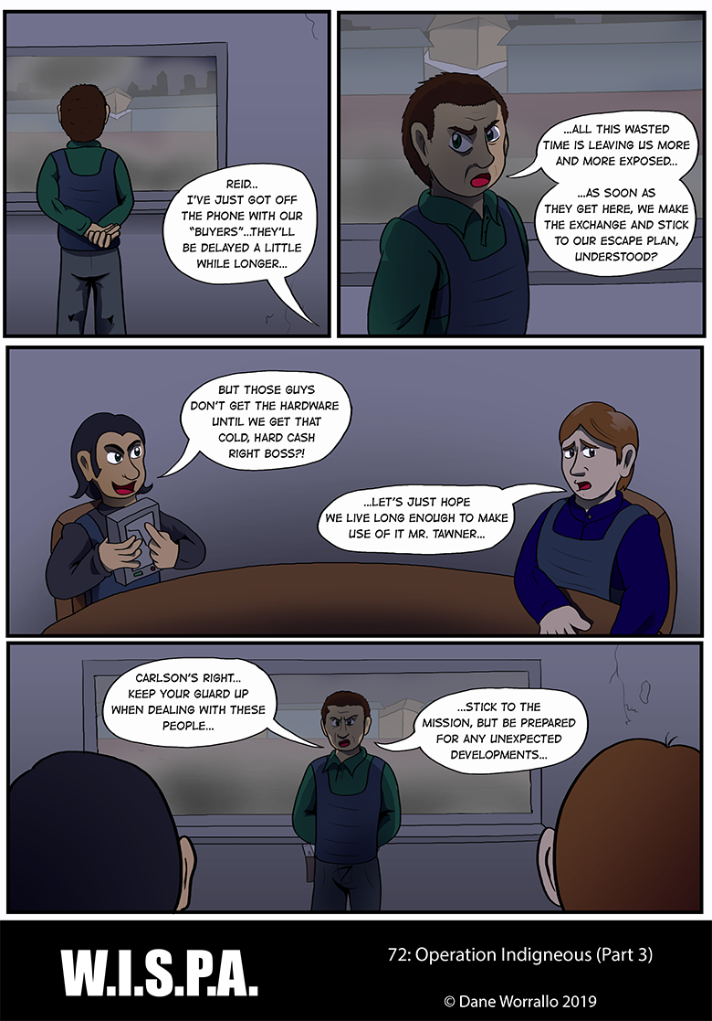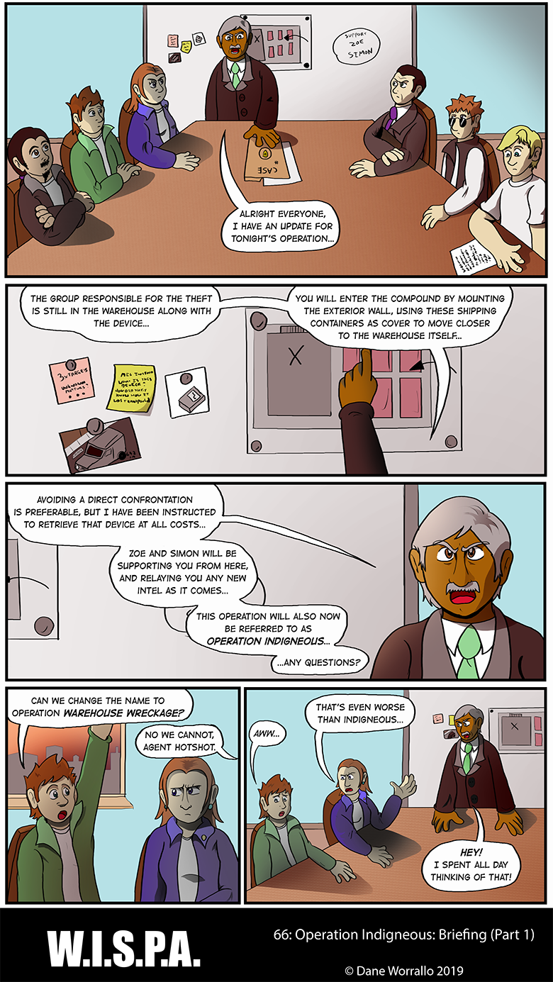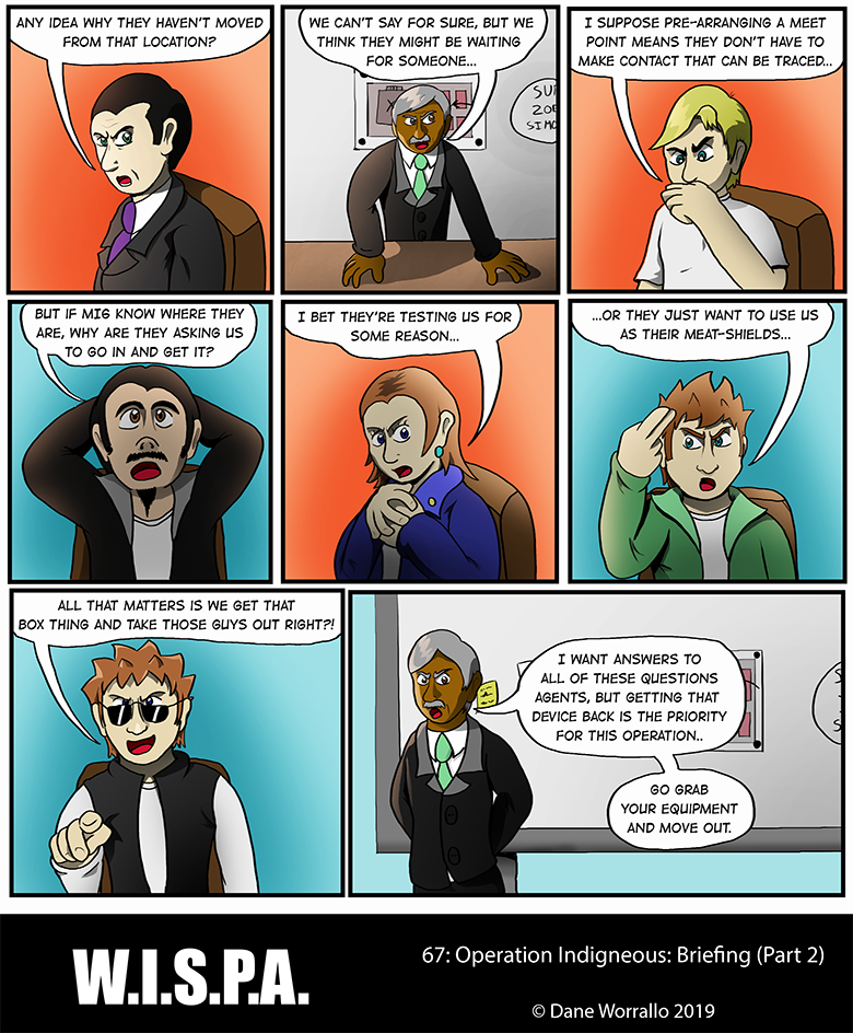 W.I.S.P.A. (Worldwide Independent Spies and Professional Agents) is an agency that undertakes the jobs that others won't do. Focusing on a team of seven agents, they take on rogues, mercenaries, shadowy organisations and large corporations to keep the peace and deal out justice in a mixture of action, comedy and drama.