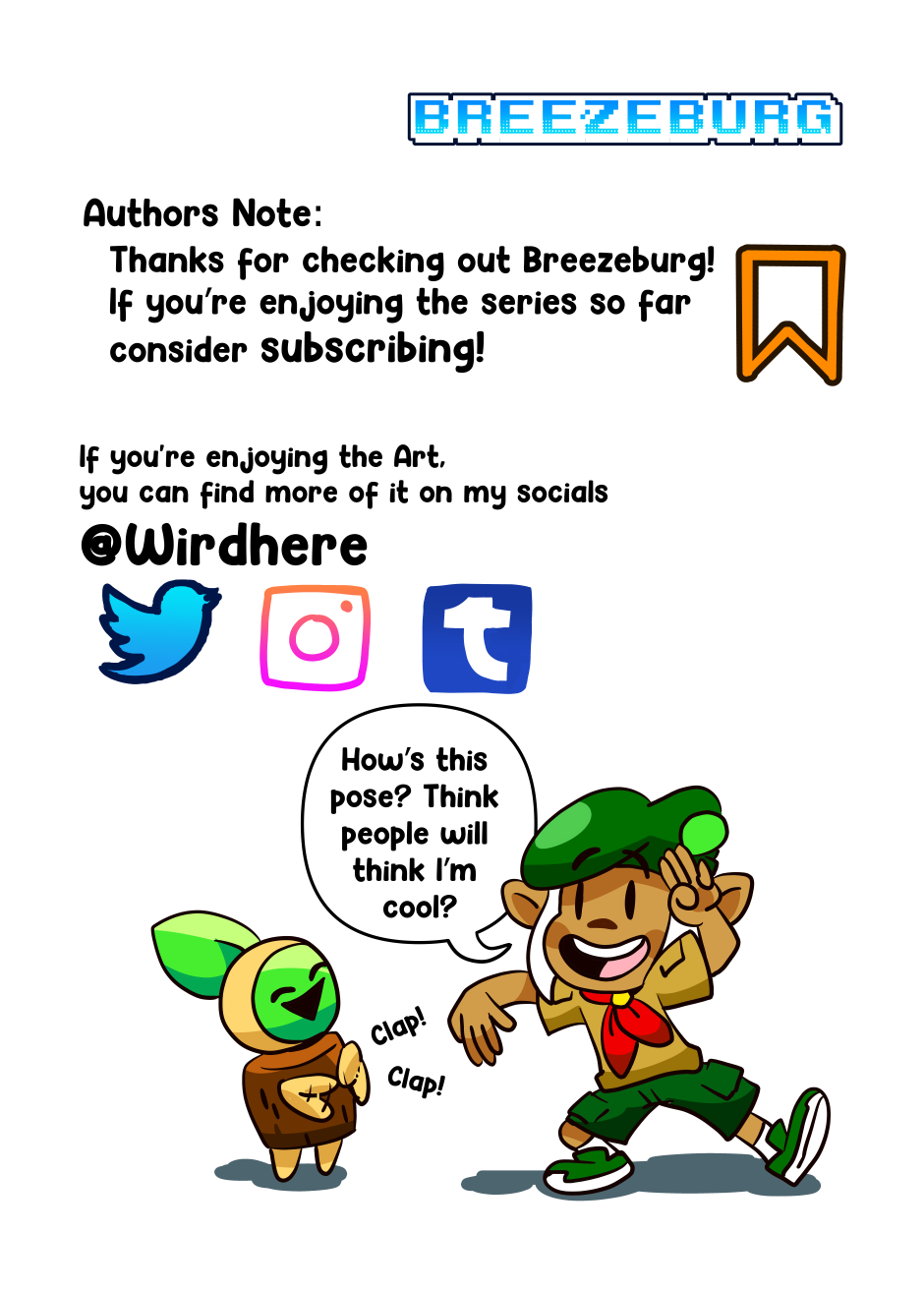 I'd love to welcome you to: Breezeburg! Thanks so much for reading this far. This is my first comic so be sure to let me know how I'm doing, :D. new Episodes every Sunday!