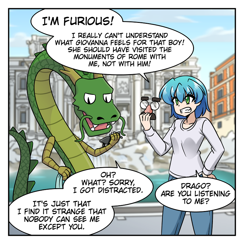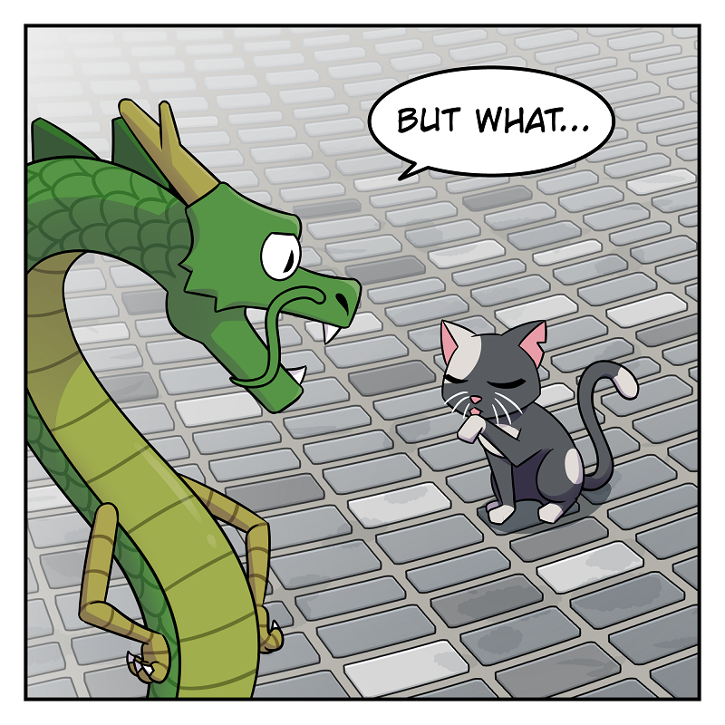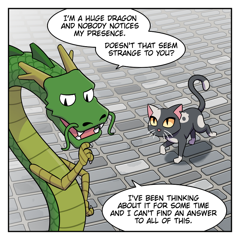 Short comic strips of a silly girl and a useless dragon!