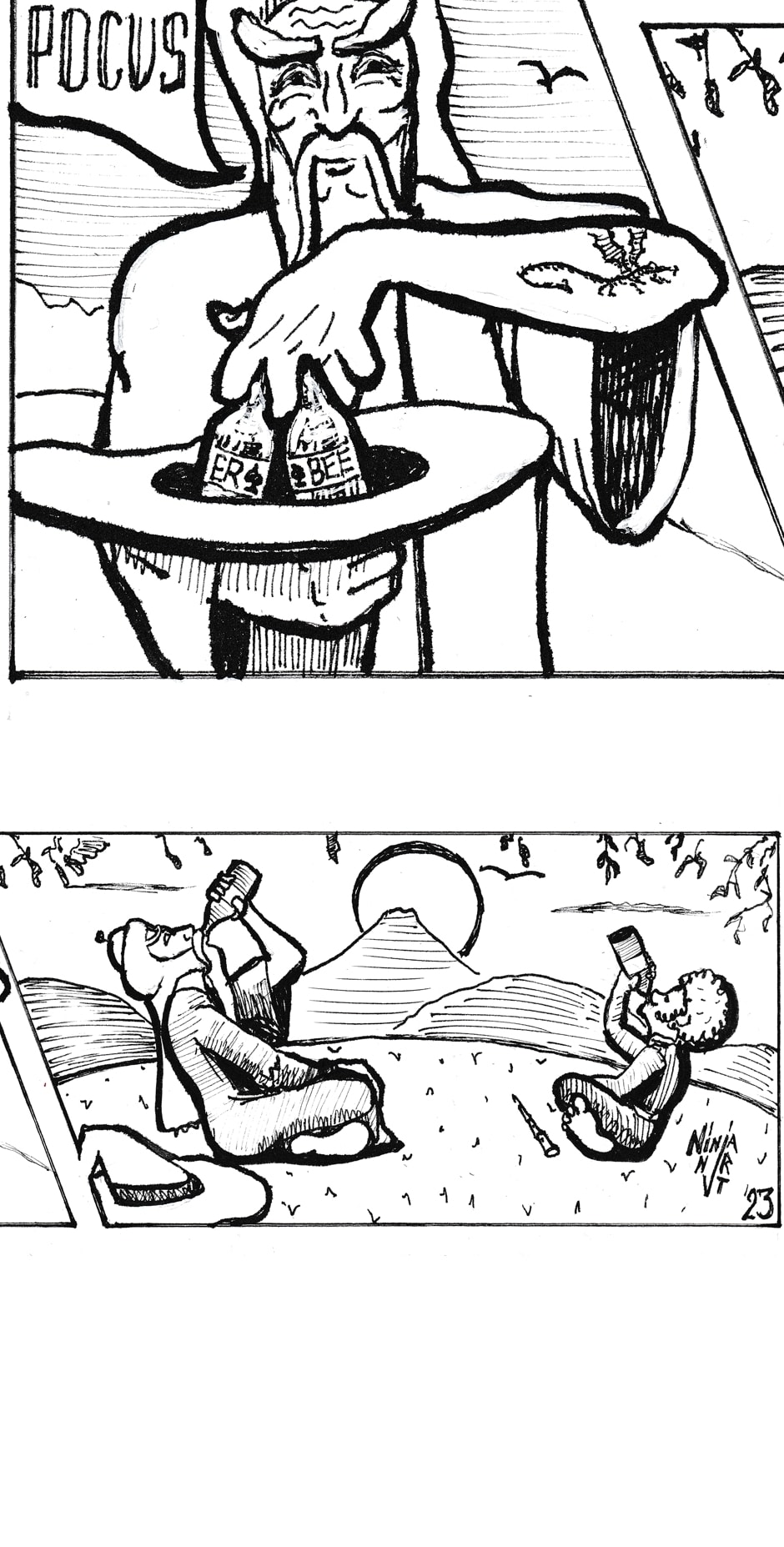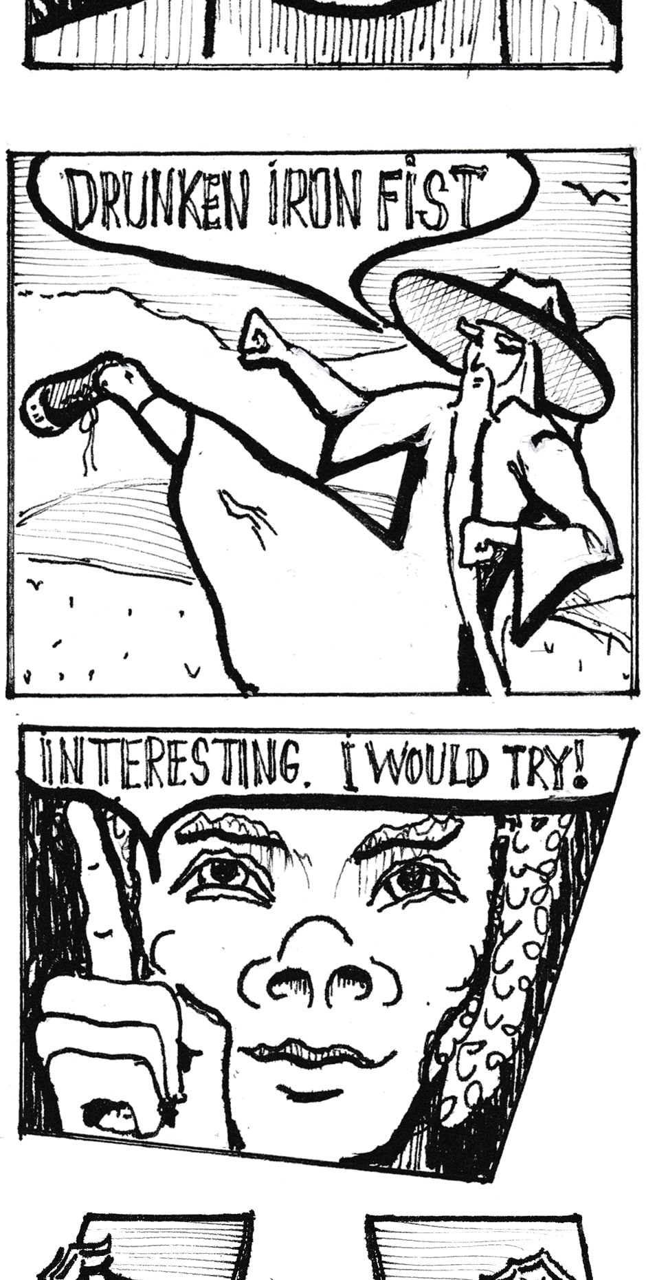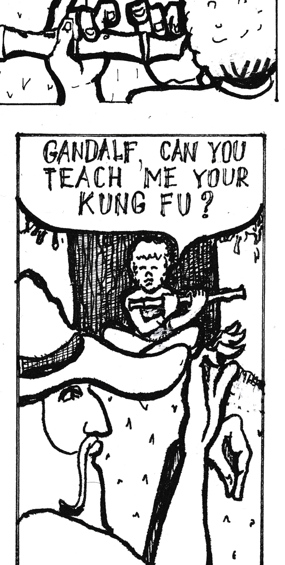 The next episode of the comic book about the adventures of the Hobbit Bilbo Drinkins and the Drinking Wizard Gandalf. This time Bilbo decides to learn the high art of kung fu.