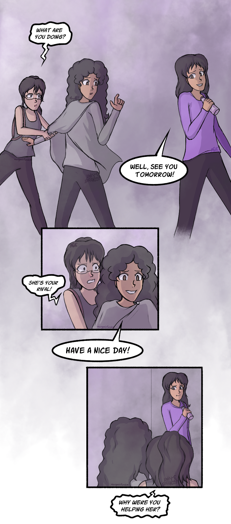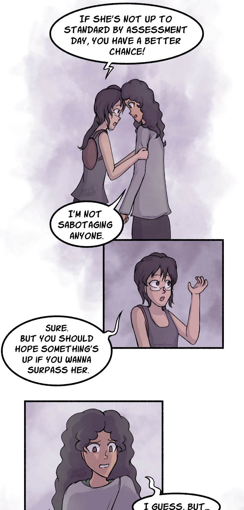 Even apart from the obviously unscrupulousness of the suggestion, maybe it's not a good idea to discuss strategy for how your friend should take down her rival when you're right behind the rival herself ^^;
