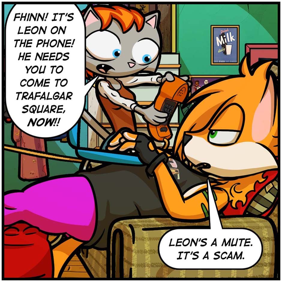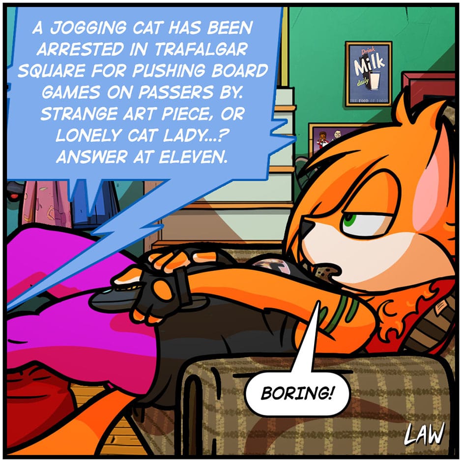 A once cool orange fox and her blue companion had amazing video game style adventures in the 90s, but now she's 43, unemployed, and lives with a cat in an unspecified relationship :P