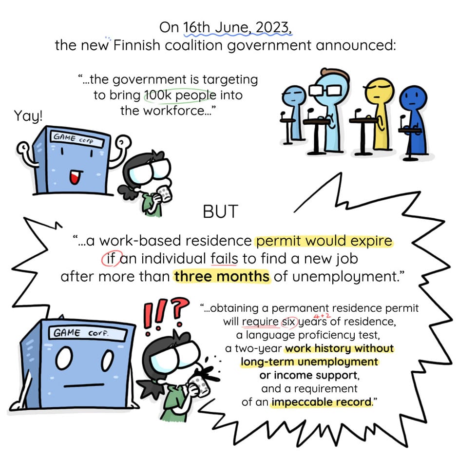 This a worrying signal for the Finnish game ecosystem! 😕 Of course it's a "proposal" phase so it could take a bit of time until this becomes an actual rule in the country. But in order to raise awareness and our voices from this early stage, many international specialists in Finland are currently looking into this issue, with active online and offline initiatives on-going at the moment. 🔥 The game industry and some companies have already made their statements 🎮