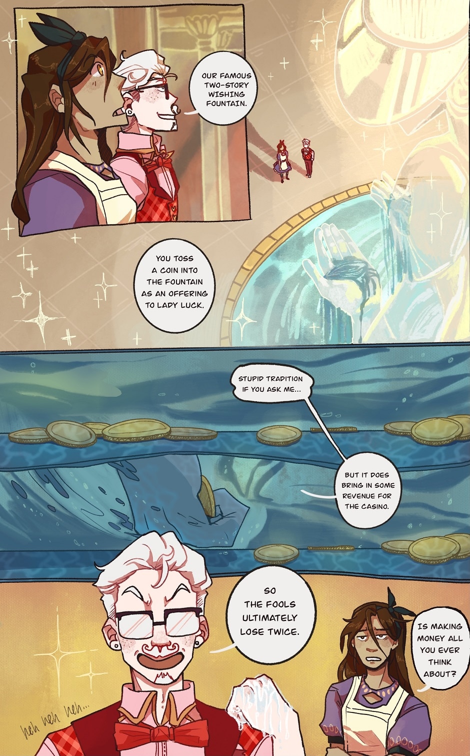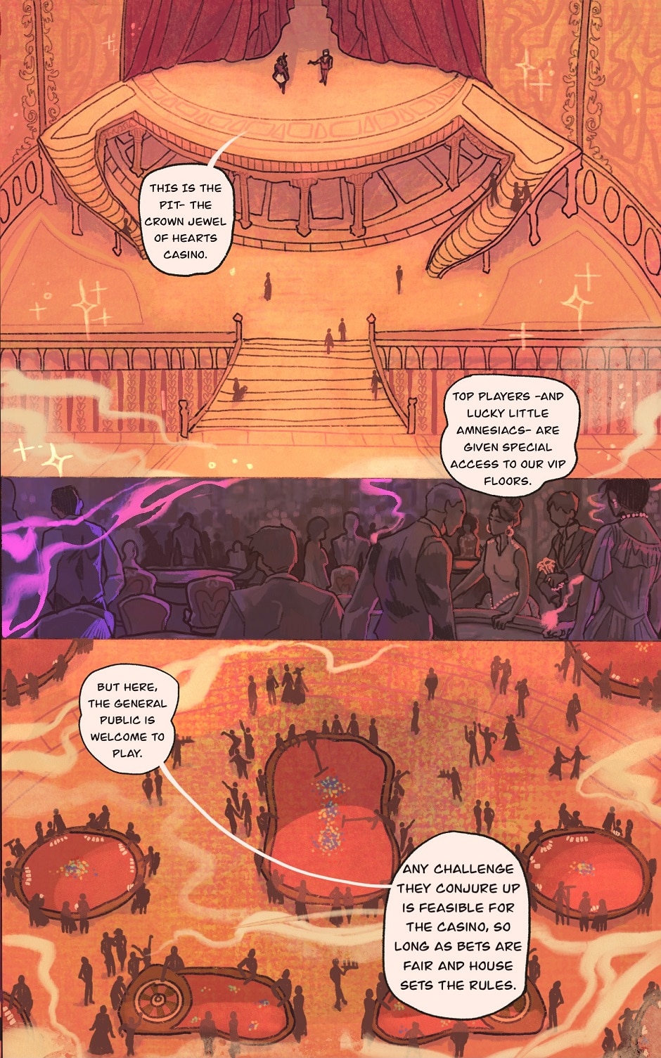 A young woman suffering from amnesia awakens in an alternate reality, one that prides itself on its affinity for games. Discovering she has gambled her memories away the night before, she hunts down the world’s inhabitants to regain them, while also trying to stay alive amidst the volatile politics between districts. [Dialogue by AMM] [Illustration by Lizpatastic]