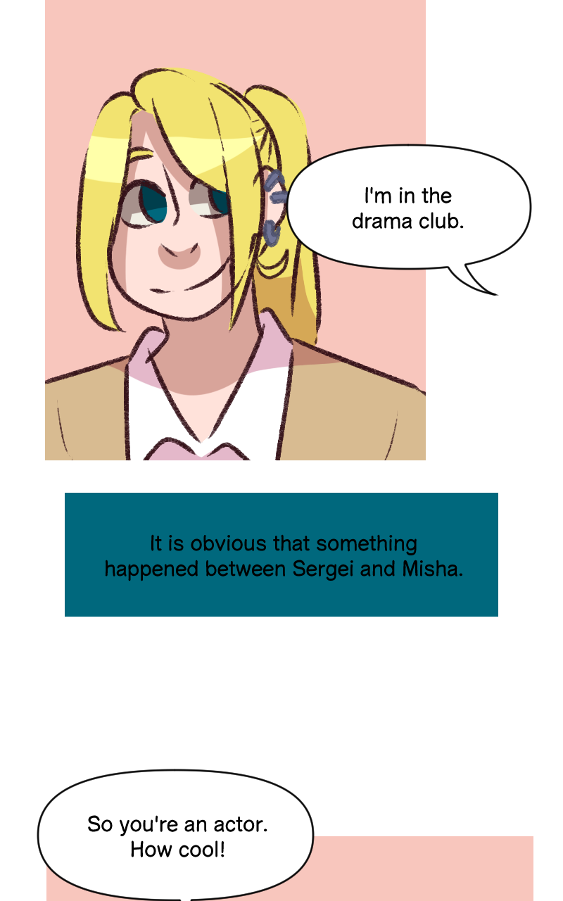 aaaa that reminded me of the ep which Sergei and Bogdan play table hockey together. I really like it and I remember well that Sergei's good at it,btw I love the colors used in the arcade so much!! and the end "what the fuck just happened?" LKSJSKSLD
