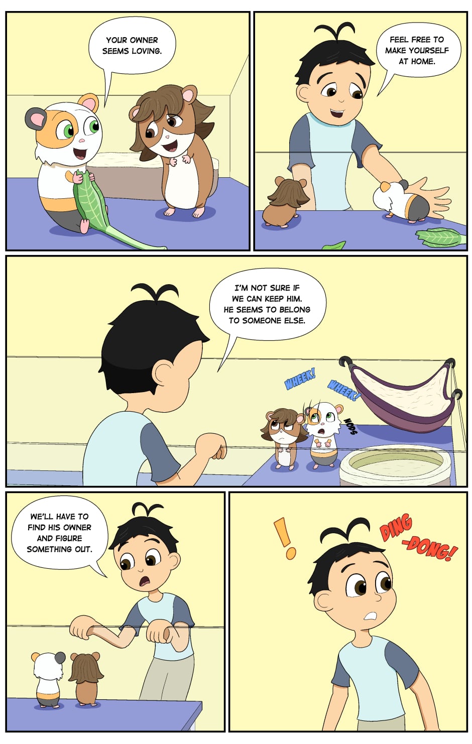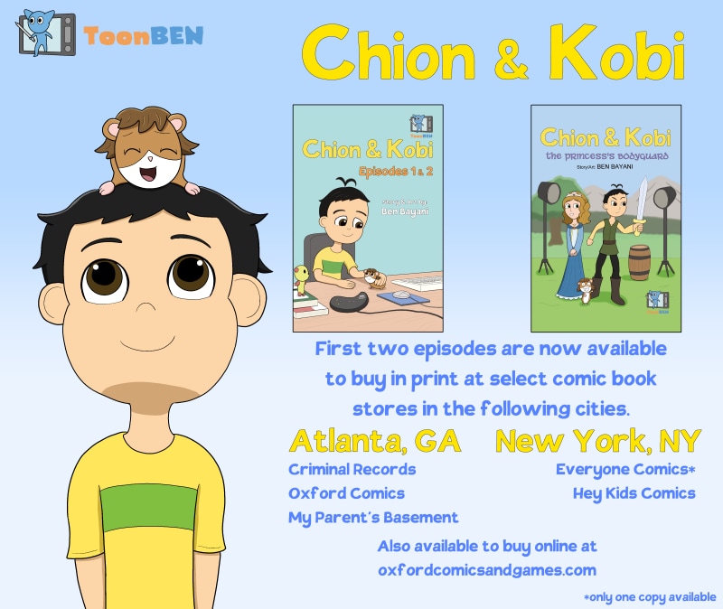 Chion and Kobi is a slice-of-life webcomic about a boy and his pet guinea pig. The story is set in Pinetown, a fictional Maine town close to the Canadian border. Chion Minami is a fun-loving and carefree 12-year old boy whose life takes a new direction when he adopts his new pet guinea pig, Kobi. With Kobi at his side, Chion broadens his scope during his transition to teenhood. Follow Chion and Kobi on their adventures as they bond with their friends, face life's challenges, and embark on journeys through the forests of Maine to the big cities of New England.