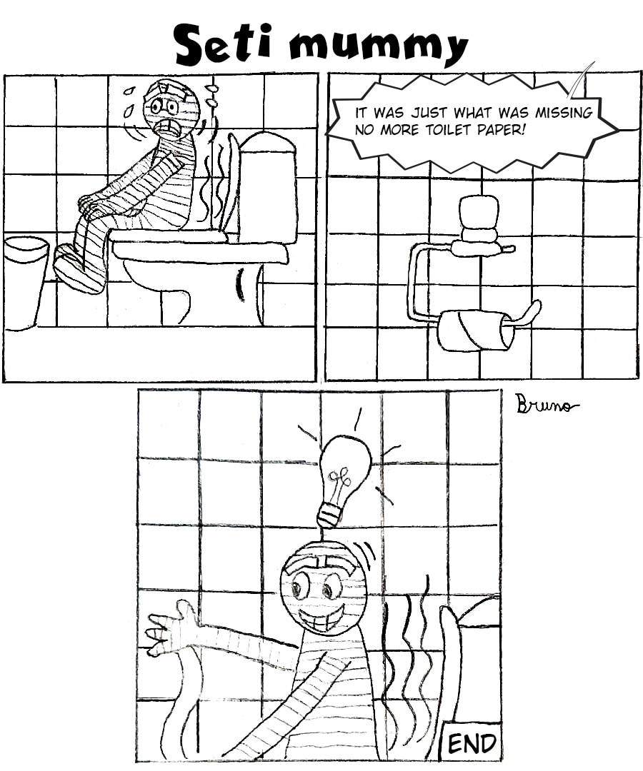 The mummy monster Seti was having a hard time in the bathroom, until he came up with an idea of a use for his sashes...