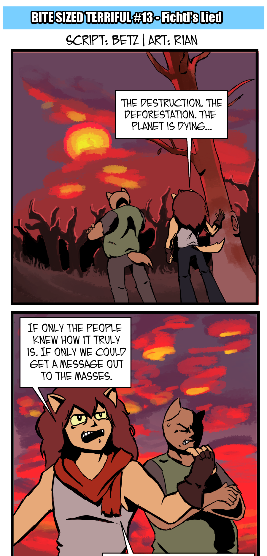 In-between the attacks from dastardly villains and world ending threats, Terriful goes about his life! Bite Sized Terriful follows the titular character as he goes on weekly adventures around his world fighting villains, waiting for his game to update, or even standing in line at the club.