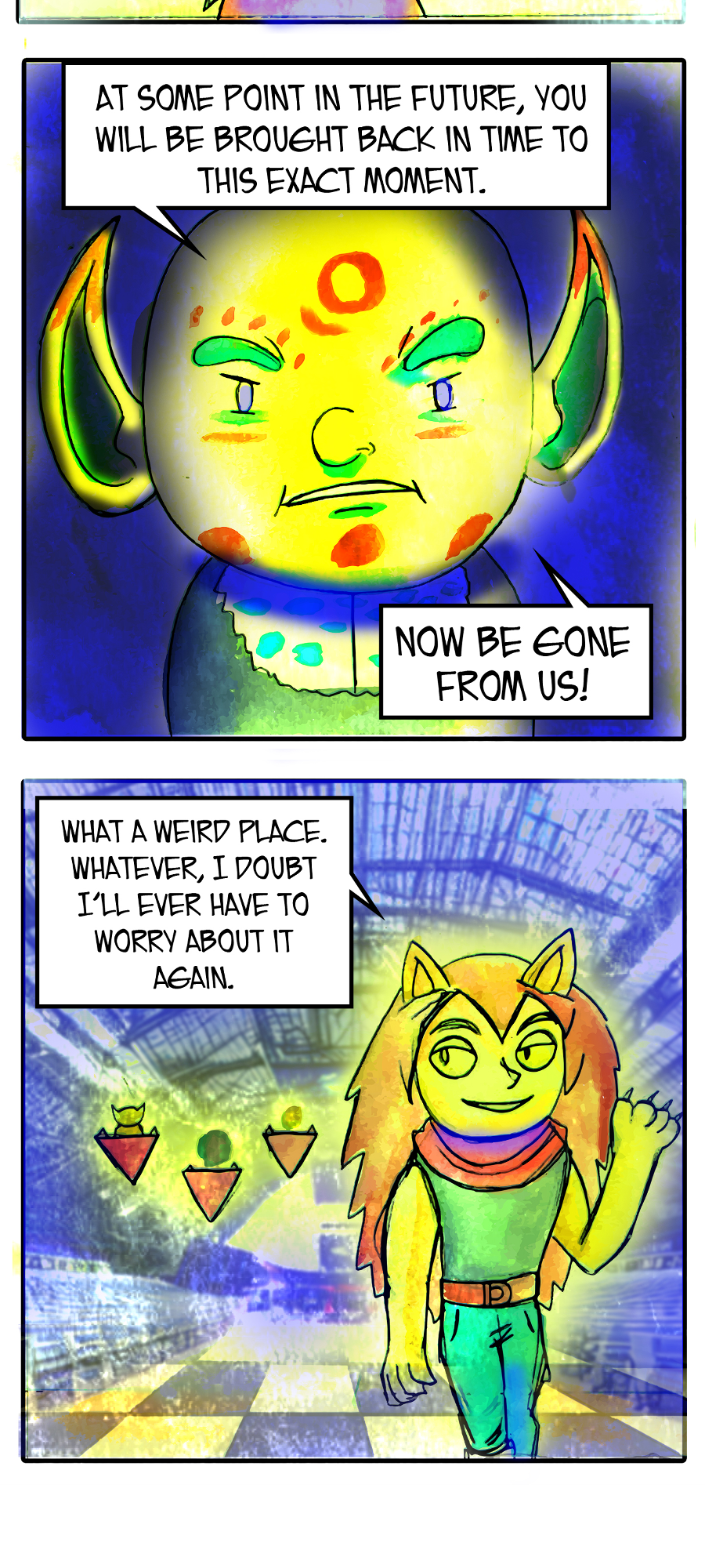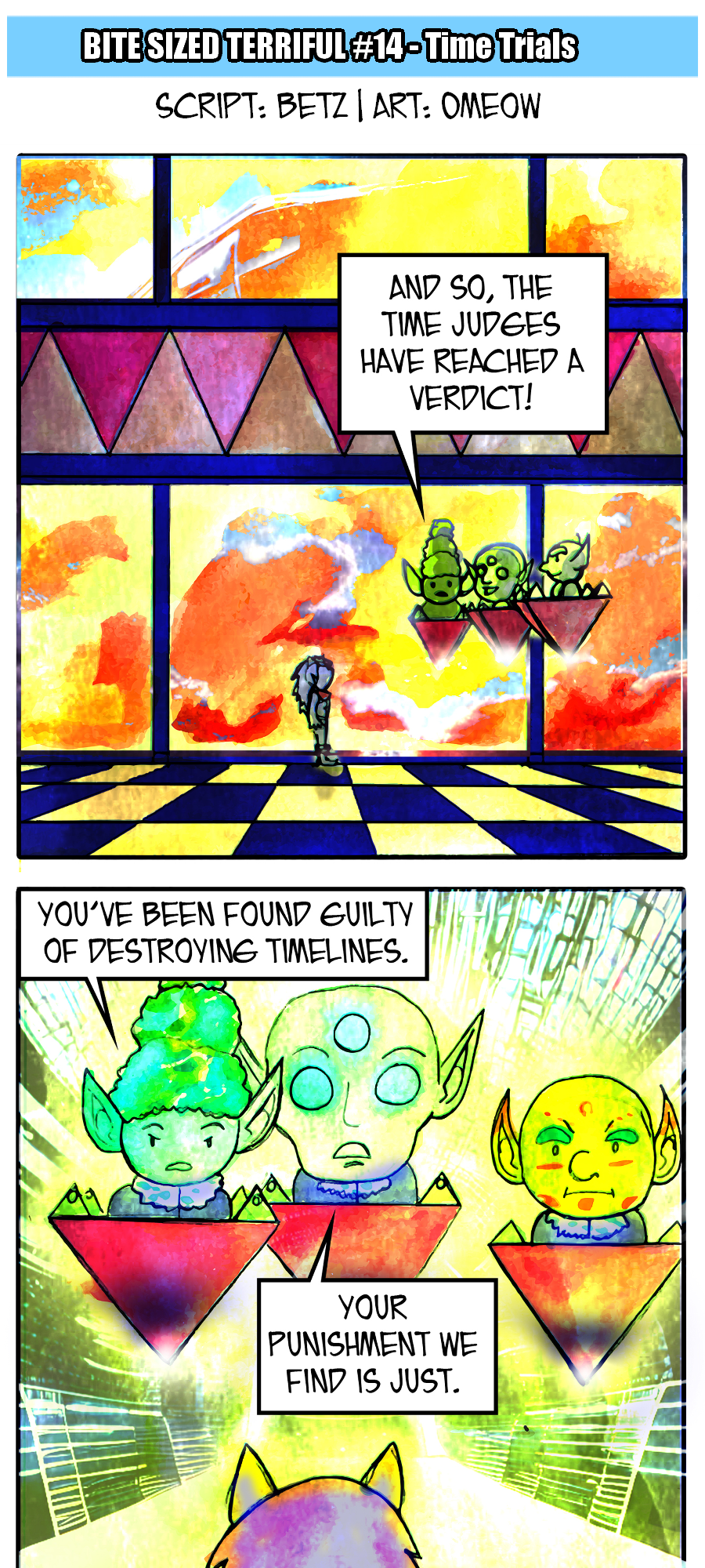 In-between the attacks from dastardly villains and world ending threats, Terriful goes about his life! Bite Sized Terriful follows the titular character as he goes on weekly adventures around his world fighting villains, waiting for his game to update, or even standing in line at the club.