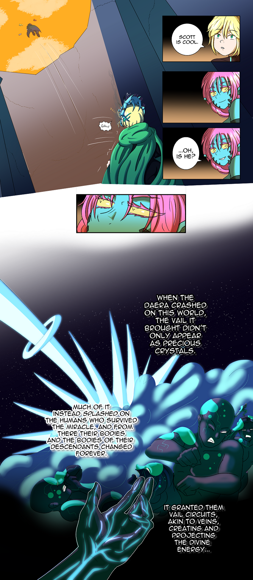So it’s kinda like reality warping I think. People’ve made technology that can convert it for basic harnessable energy for heat and power. Some humans like Martyrs naturally generate it and are attuned that they can subconsciously apply it to different effects. Others like the Pontiff and the Blessed Ones, and apparently, potentially, Fiadh, have a much more intrinsic connection to it and can use it to simply alter reality in some way like creating towers, rather than in just one way like flying or the abilities the Tower martyrs can do. And I’m guessing since the Shaitan character here had some past with the comet/the Daera, it can use Fiadh’s connection without any trouble like the Pontiff did