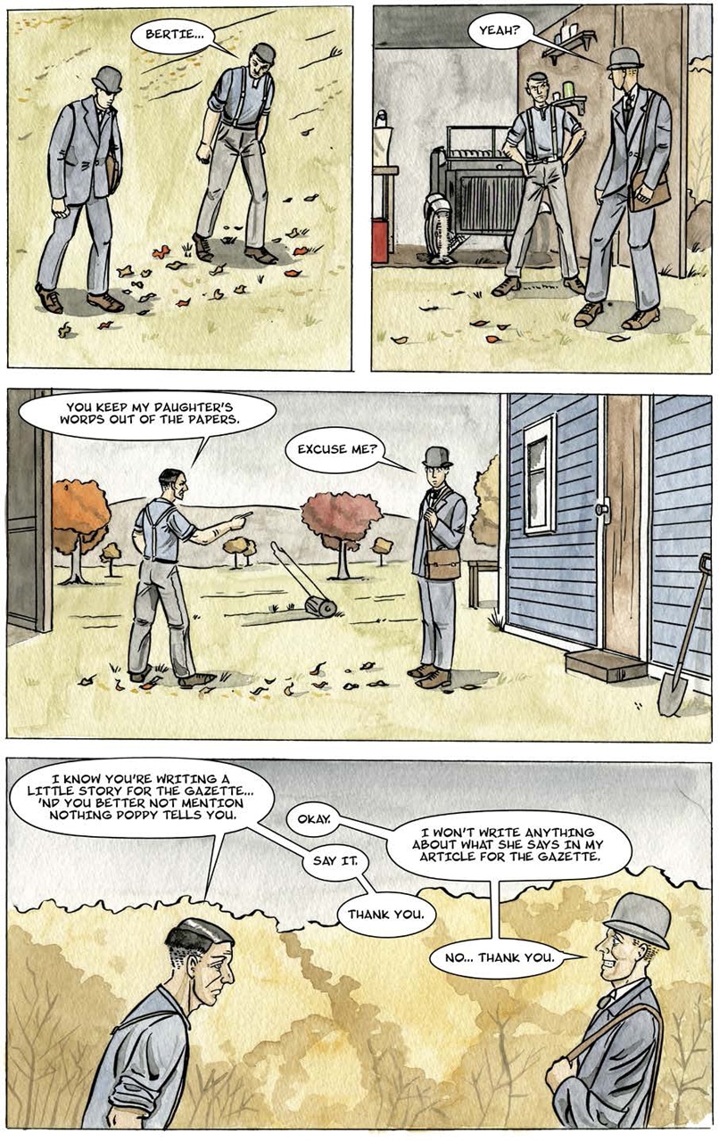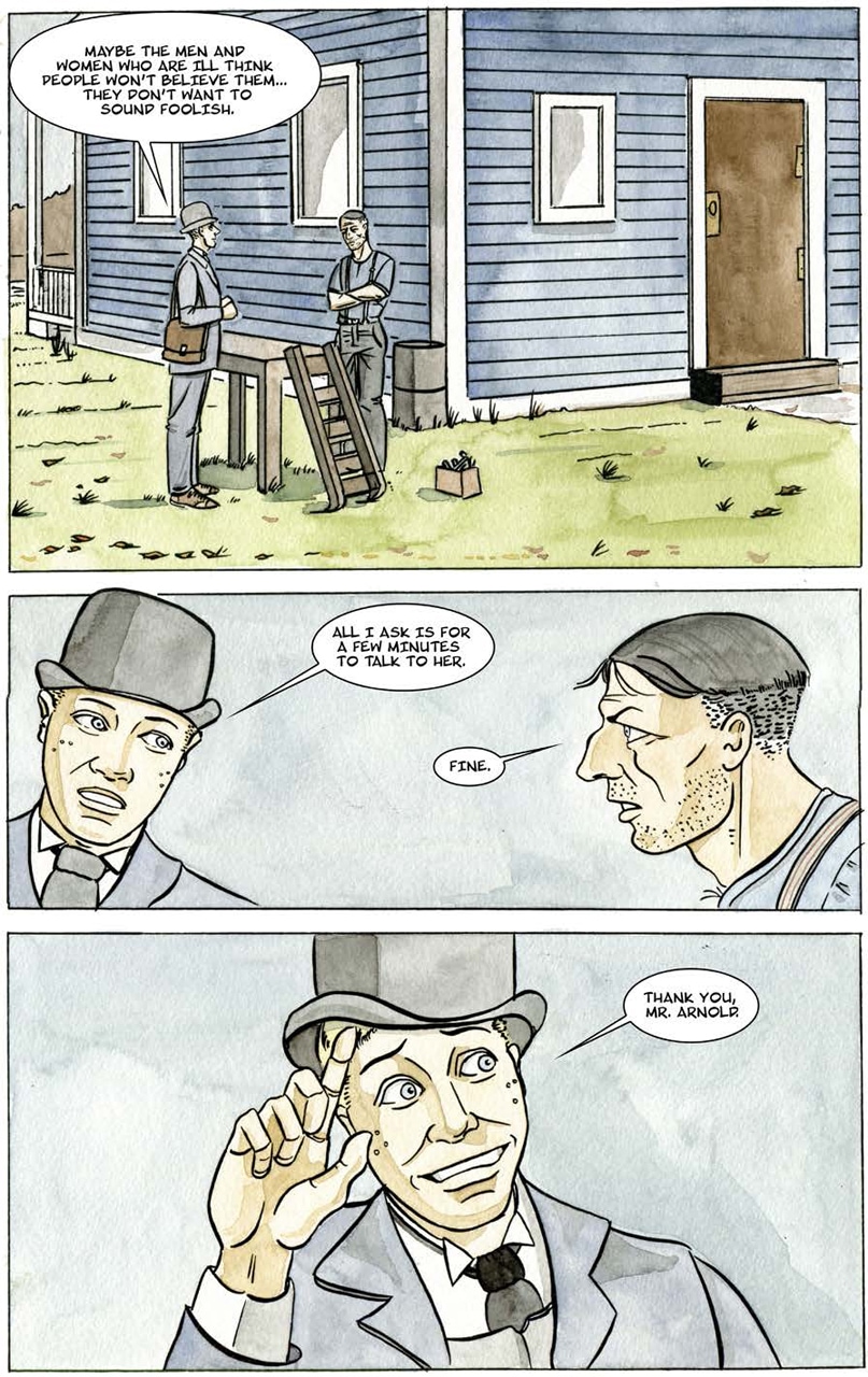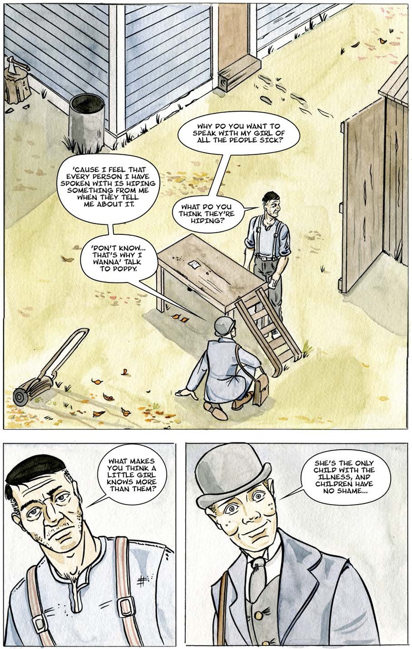 Bertie steps up to help a neighbour; a glimpse of the Spanish Lady's underworld, The Darkness, appears in the shadows.