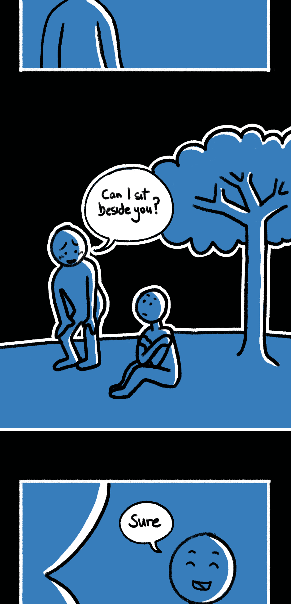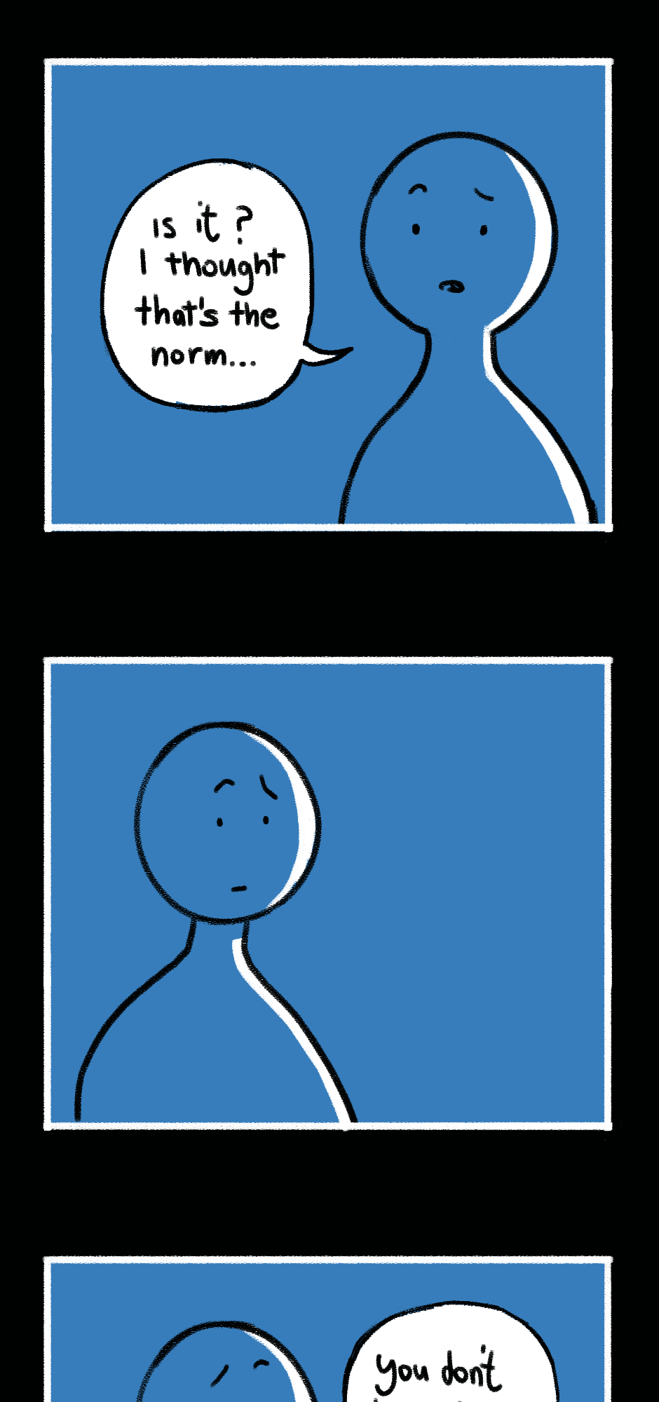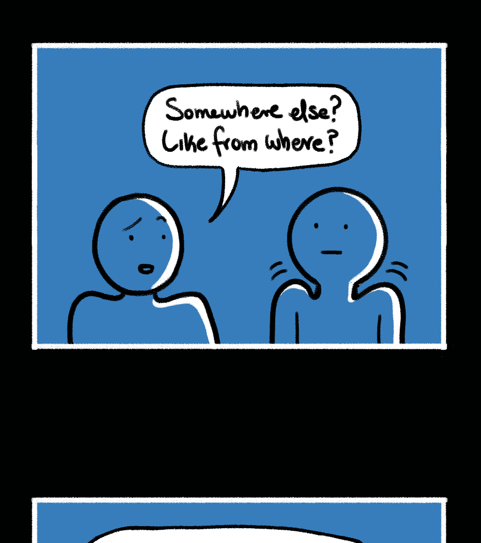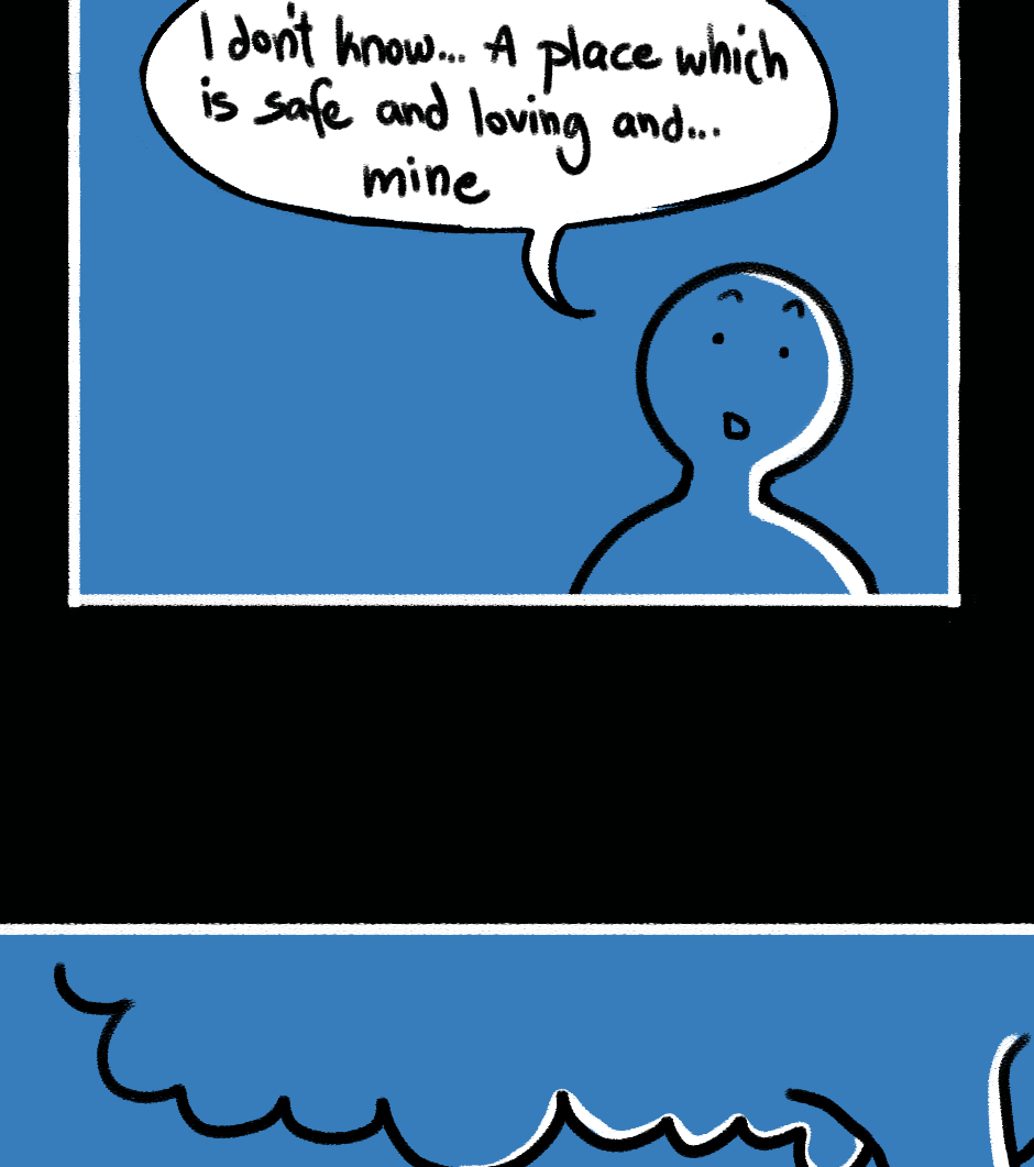 "Falling through" is a graphic novel about pain, identity, and societal dynamics. Readers are taken on a journey through a phase of our main character's life as they search for solutions and discover their desires and needs. The story highlights how different stages of emotional intelligence and cognitive dissonance impact individuals and encourages questioning of societal norms and reflection on personal growth. The visual design humorously reveals the characters' motivations in a caricatured yet tangible way, emphasizing the story's core message. Through compelling storytelling and engaging presentation, "Falling through" challenges societal norms and offers a unique reading experience.