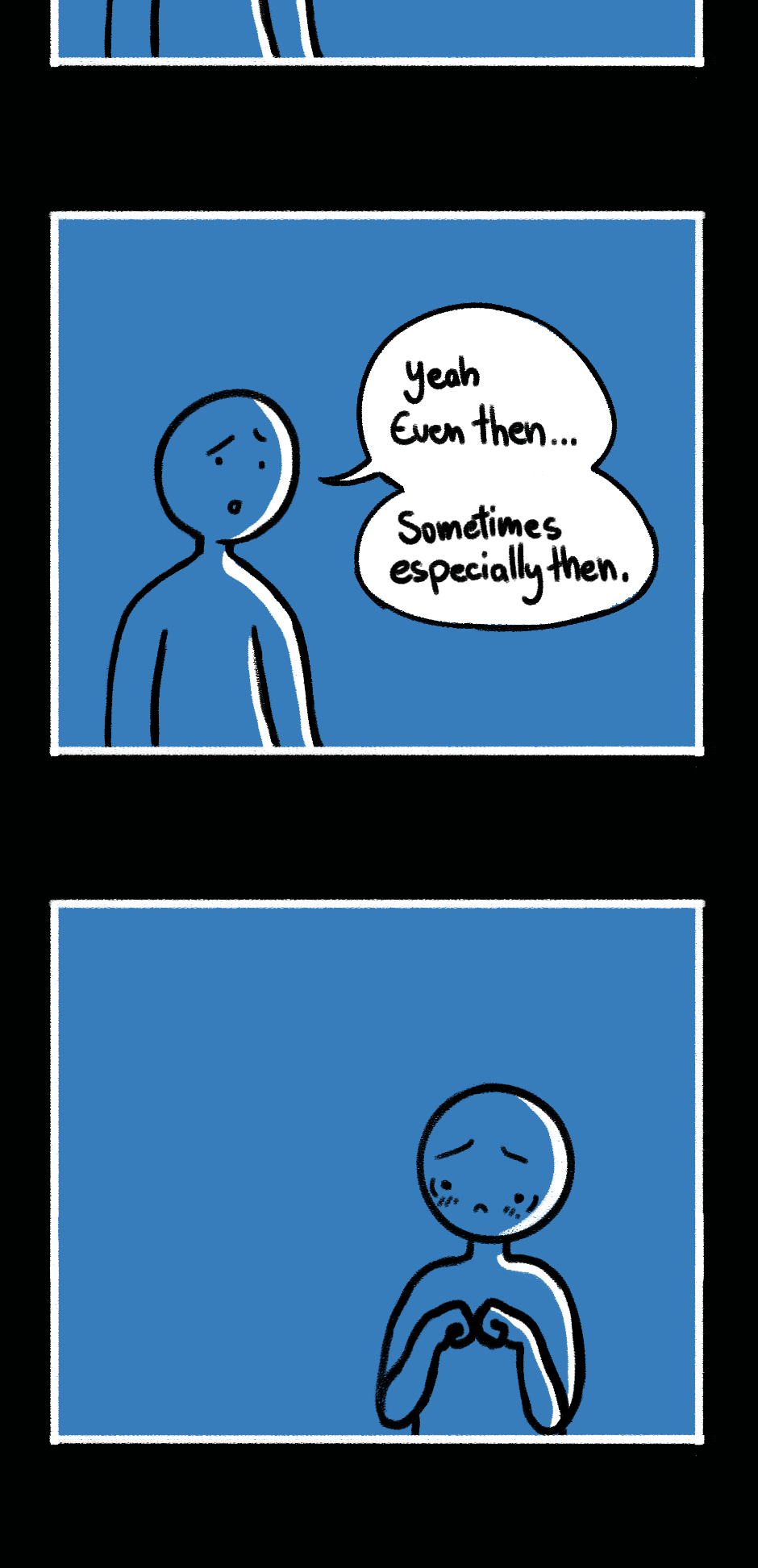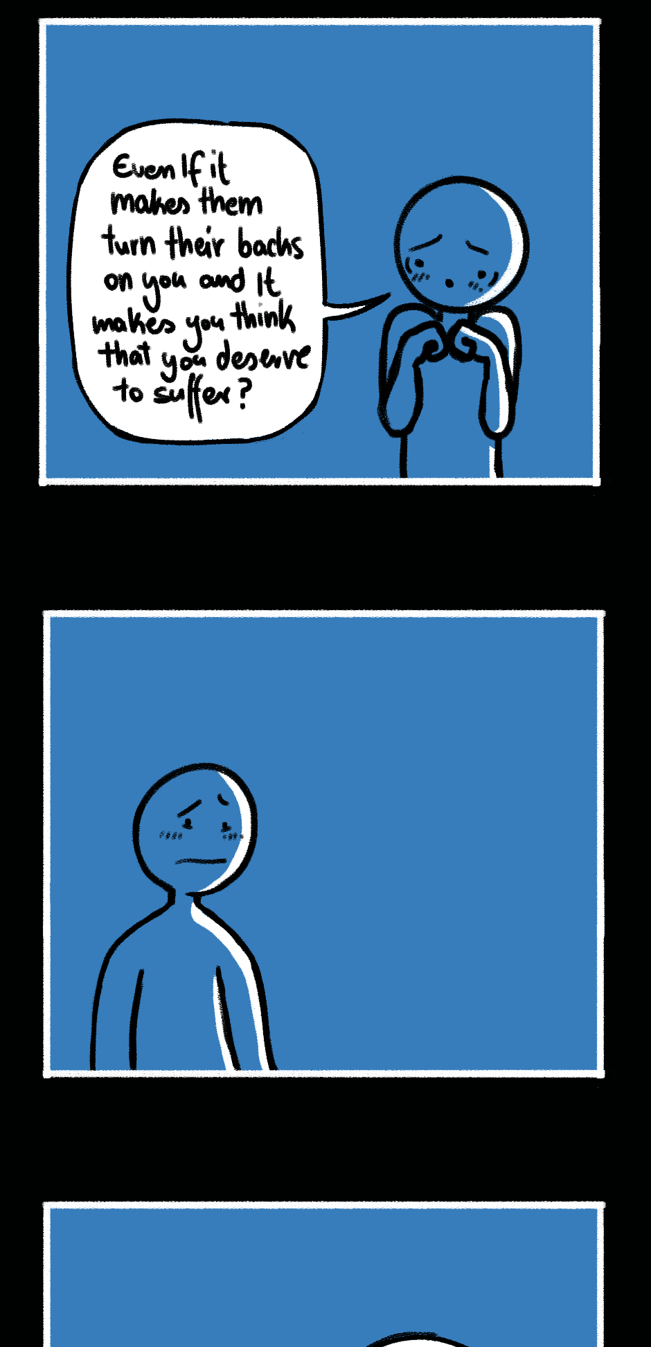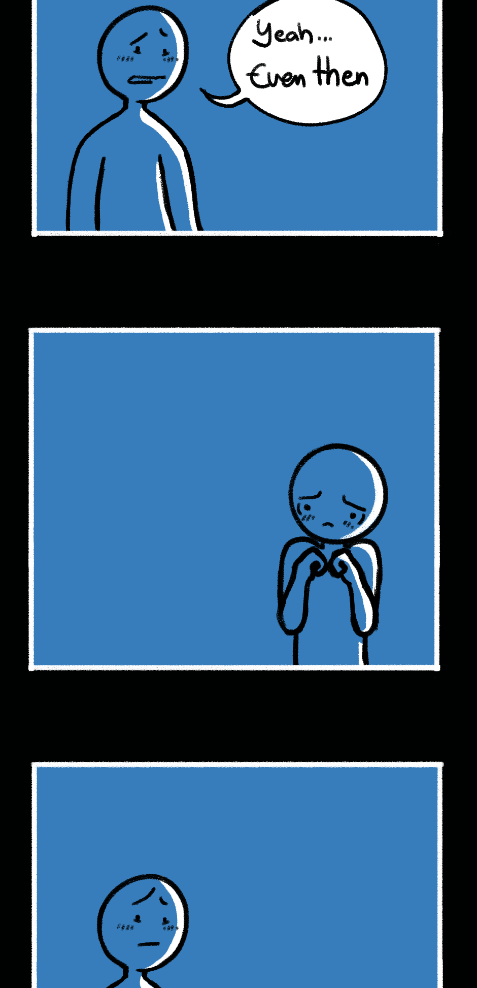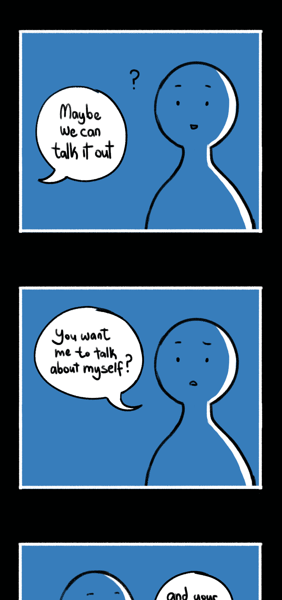 "Falling through" is a graphic novel about pain, identity, and societal dynamics. Readers are taken on a journey through a phase of our main character's life as they search for solutions and discover their desires and needs. The story highlights how different stages of emotional intelligence and cognitive dissonance impact individuals and encourages questioning of societal norms and reflection on personal growth. The visual design humorously reveals the characters' motivations in a caricatured yet tangible way, emphasizing the story's core message. Through compelling storytelling and engaging presentation, "Falling through" challenges societal norms and offers a unique reading experience.