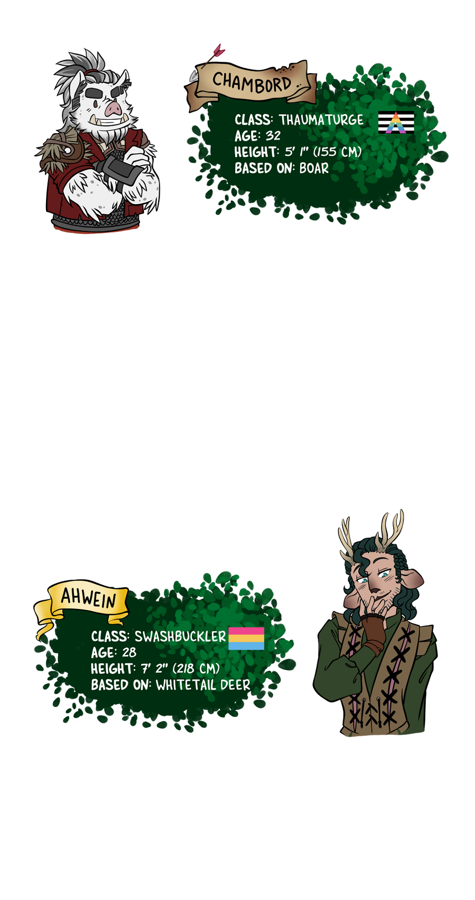 They haven't ALL shown up just yet, but they're on their way. We are playing a path in Pathfinder, so if the classes don't make sense, or match to straight up D&D, THAT'S why. Also, ahaha they mostly so OHLD. Except for Ahwein, who is a BABY.