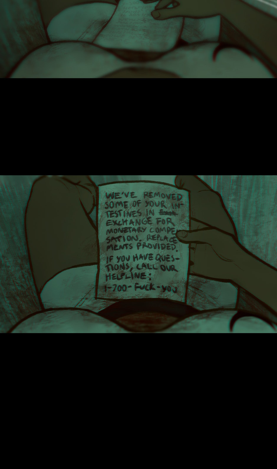 "Good morning! So... we took your organs!"