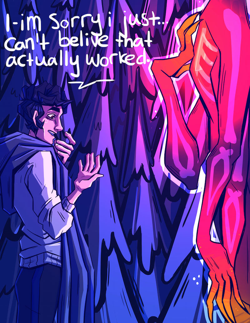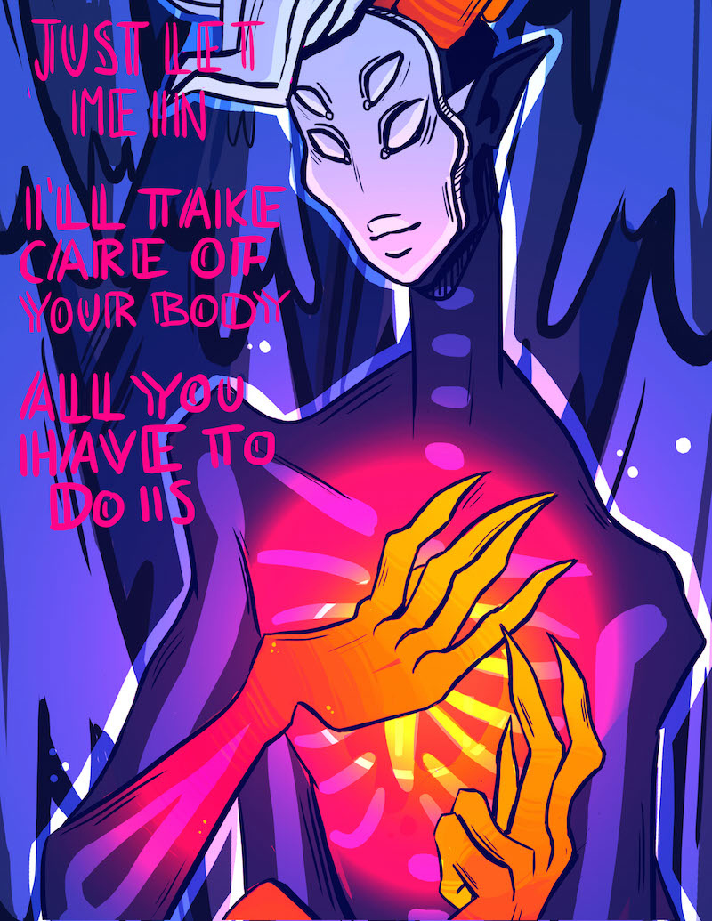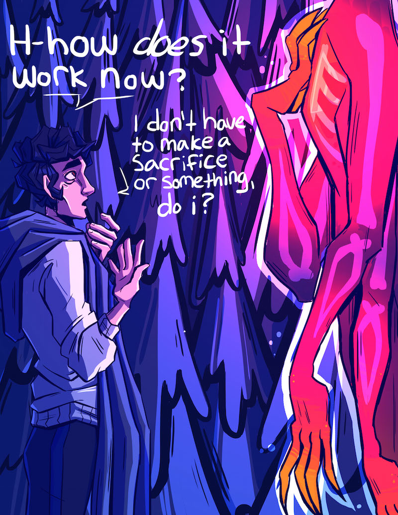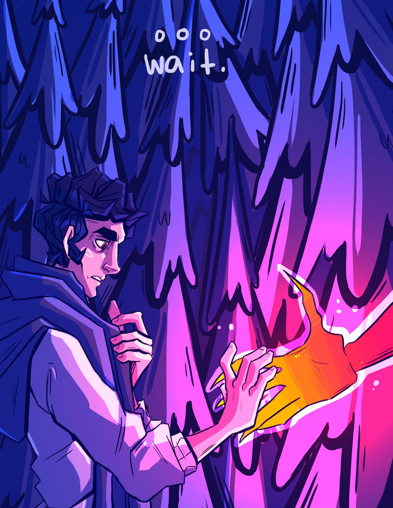 Felt best if i split this chapter into two! Don't trust strange spirits in the dark woods, kids. Not a lot i could do about the sizing of the gifs, i apologize for that bit. :'D