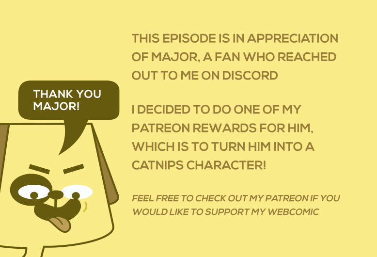 A big thanks to Major, a fan who reached out to me on Discord. He loves my webcomic, so I decided to show my appreciation by creating him as a Catnips character and featuring him in this episode!