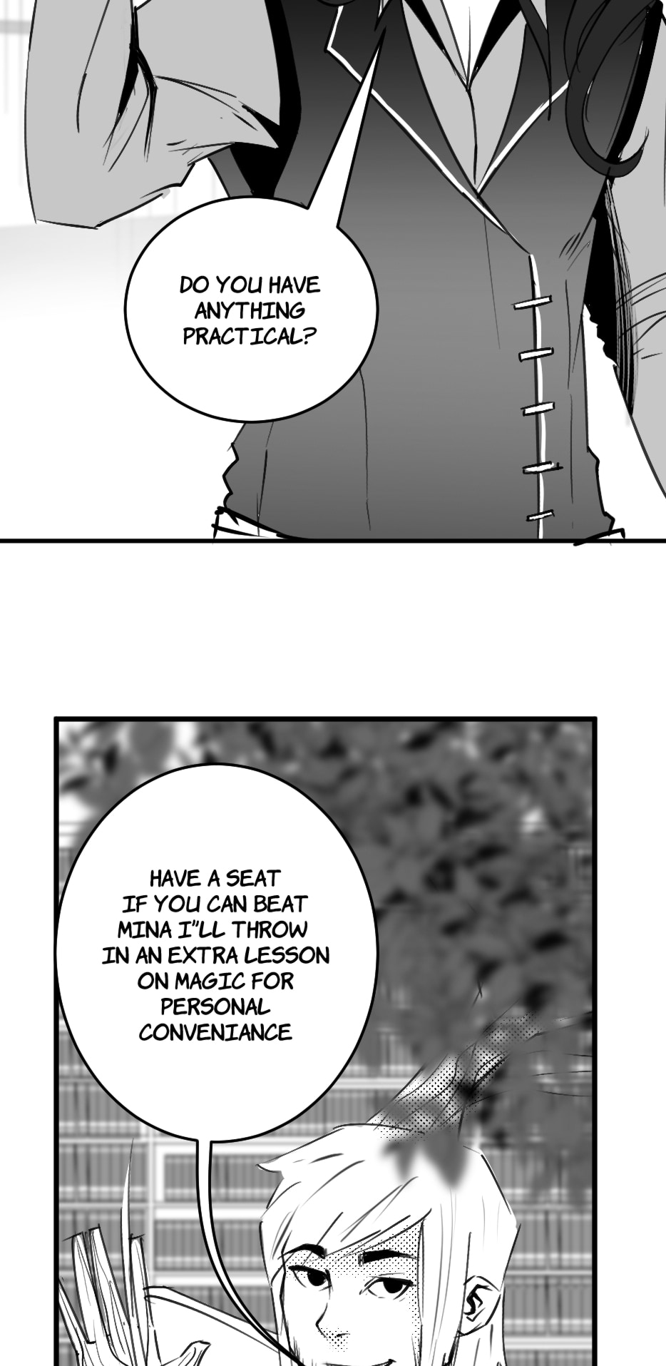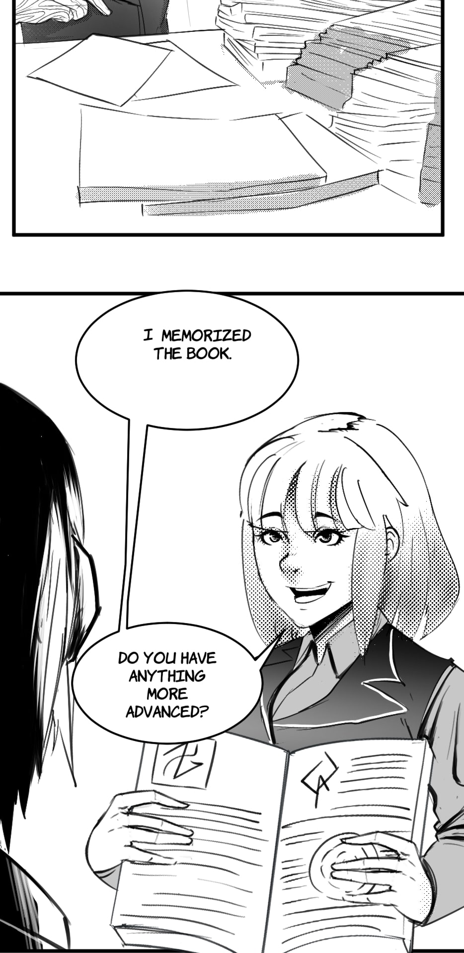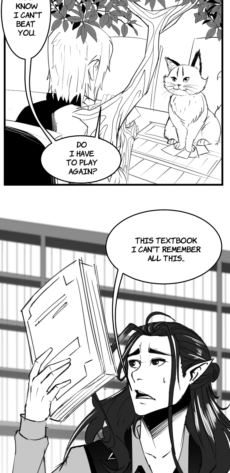 The daily life of a treeish librarian in charge of a magical collection of books, his intelligent cat assistant, and the students in training.
