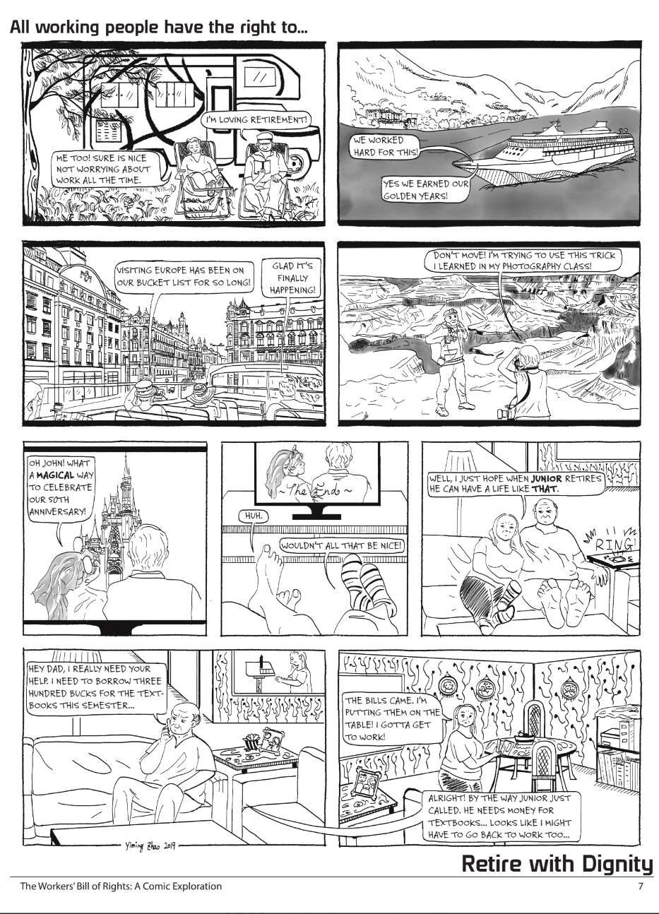 The Workers' Bill of Rights was a resolution passed in 2017 by the AFL-CIO to reaffirm nine rights that should belong to each and every worker. In the Worker's Bill of Rights: A Comic Exploration, each of these rights are brought to life through short comics.