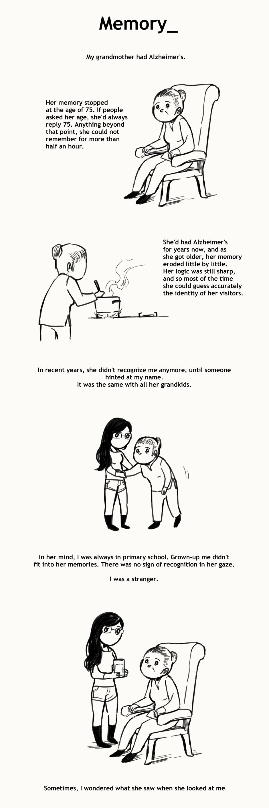 Memory is one of the most precious treasures, in this world. I'm sure whatever memories she had of you must've been good ones. Super sorry for your loss. :(