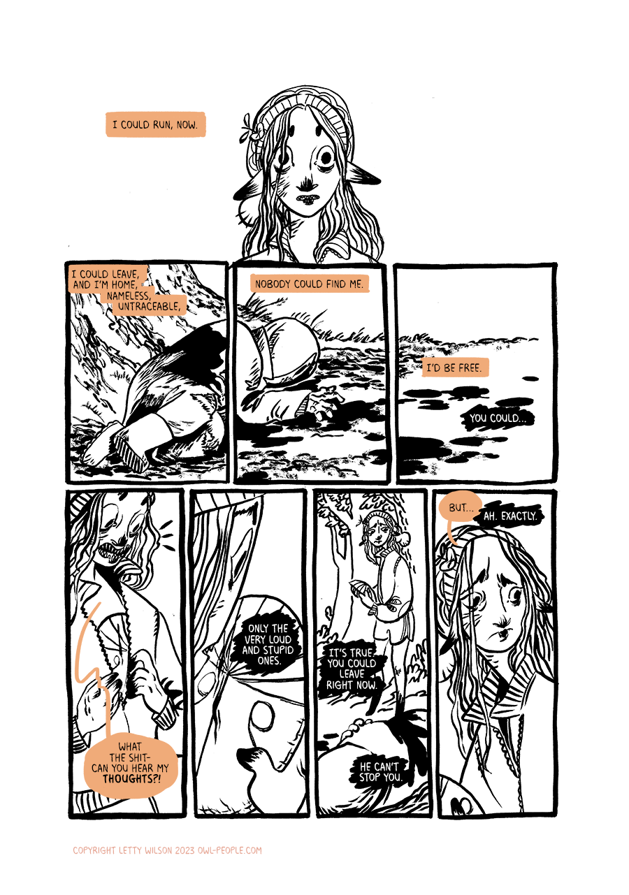 Featuring a terrible underground orchard, a coven of gay witches, an oracle of worms, fungi portals, travel-sized forest gods, sirens, goblins, devils, and a cute little bug in a hat!