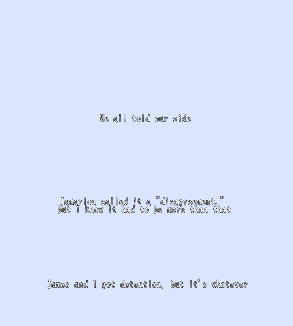 November is just a high schooler that's had a crush on a boy for ages. Said boy's name is Jamarion, who is seemingly oblivious to any signs November throws his way. After a crazy event out on the track, November now has an excuse to actually talk to Jamarion. And their relationship only goes forward from there.