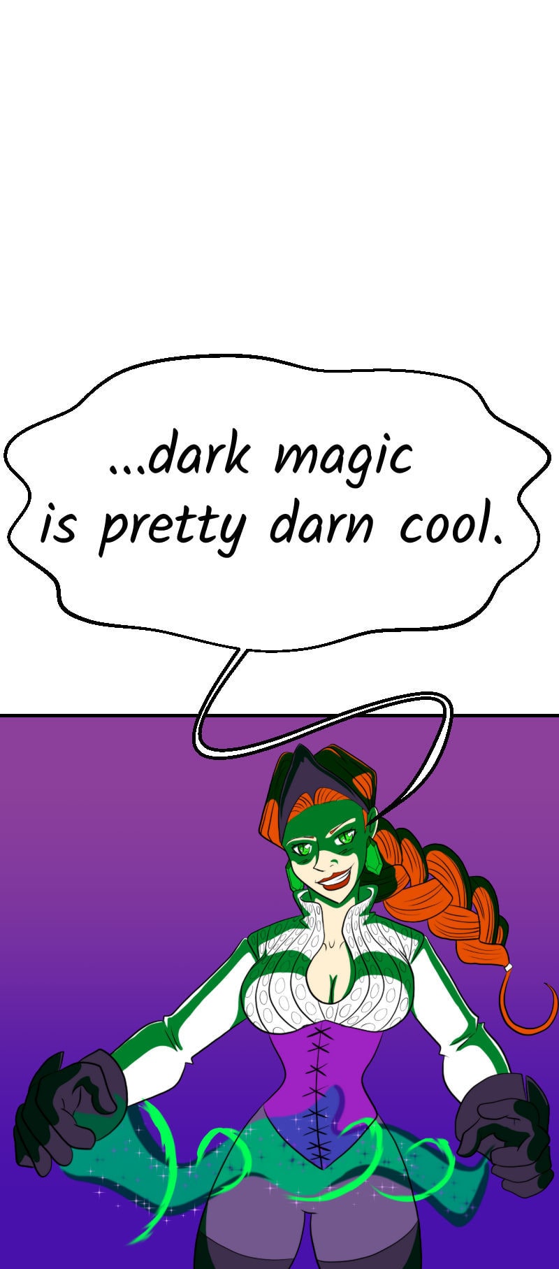 Baroness Rasputia is a dark sorceress with an orc army who rules Bloodfist, but when a group of well meaning adventurers come to depose her, our stylish heroine must figure out a way to convince them to leave her alone and instead save a village in trouble