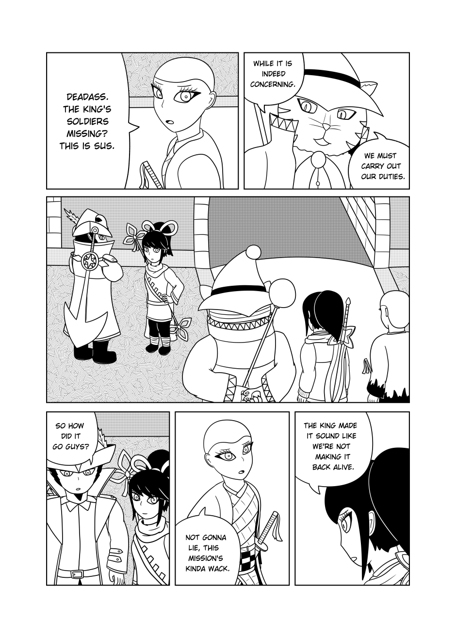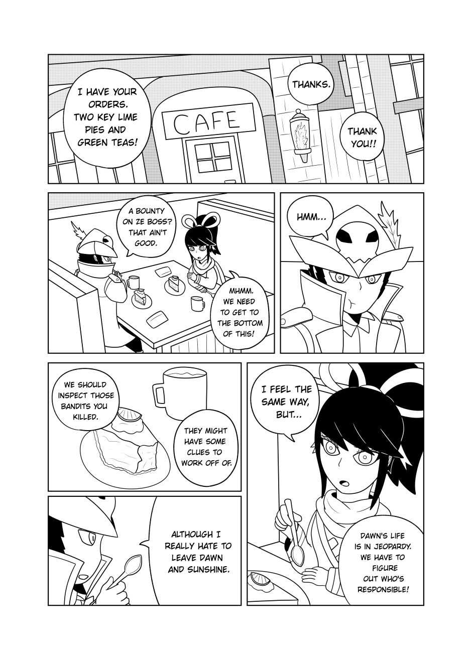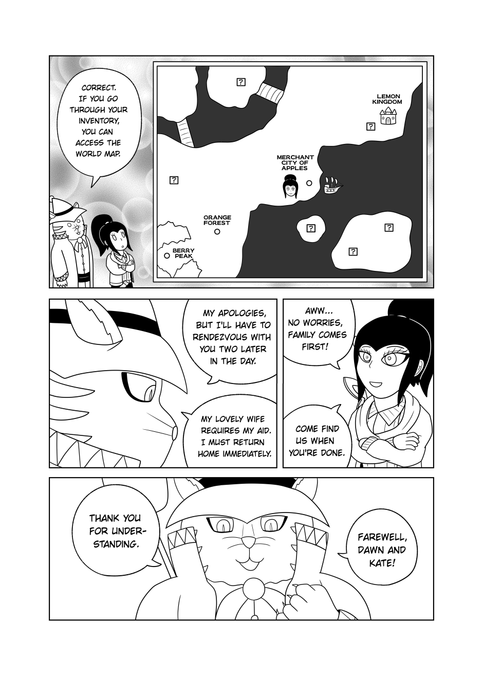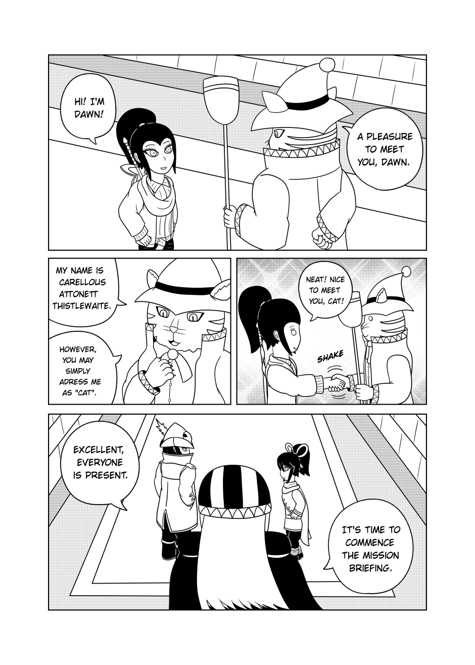 After a shaky encounter with some bounty hunters, Dawn and Mel make their way towards the Adventurer's Guild. Upon meeting up with Viet, Dawn is introduced to her new companions. However, one of them in particular is intriguing to our hero.