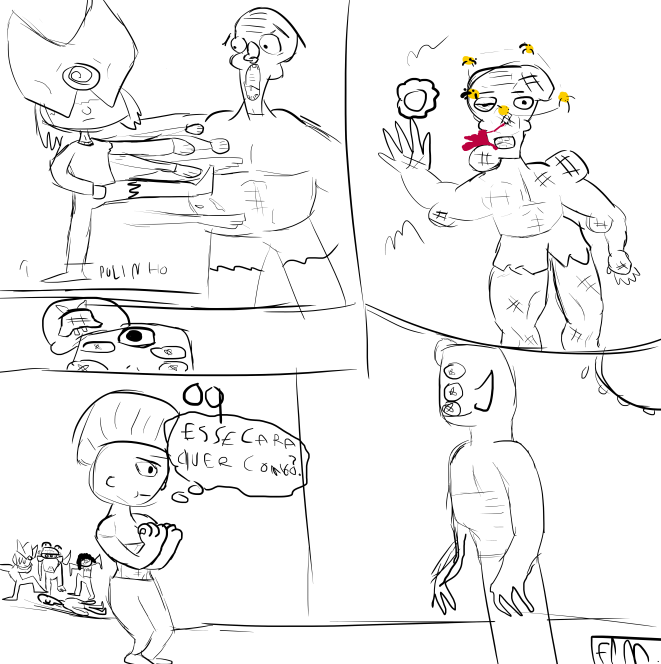 um gibi (bem malfeito no começo kkkk) com formato de hq, publicaçao de manga, historia estranha e estilo artistico bizarro.
