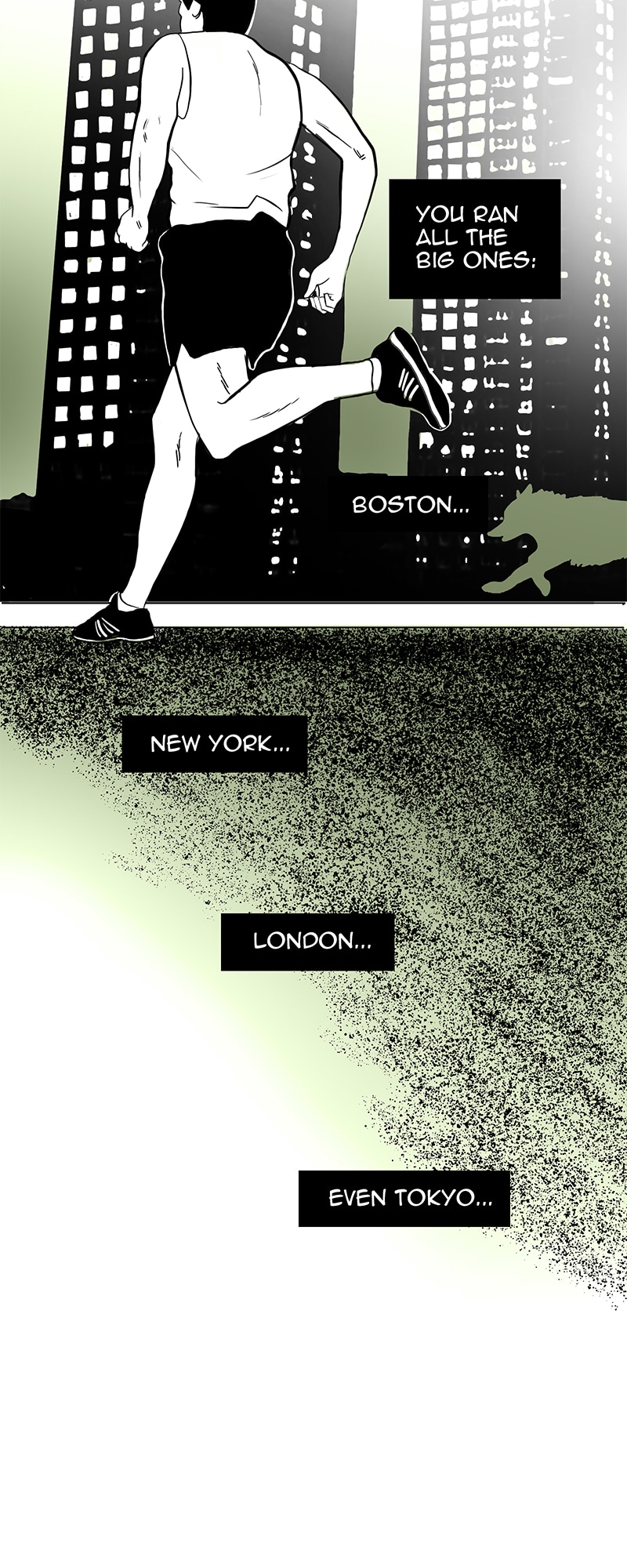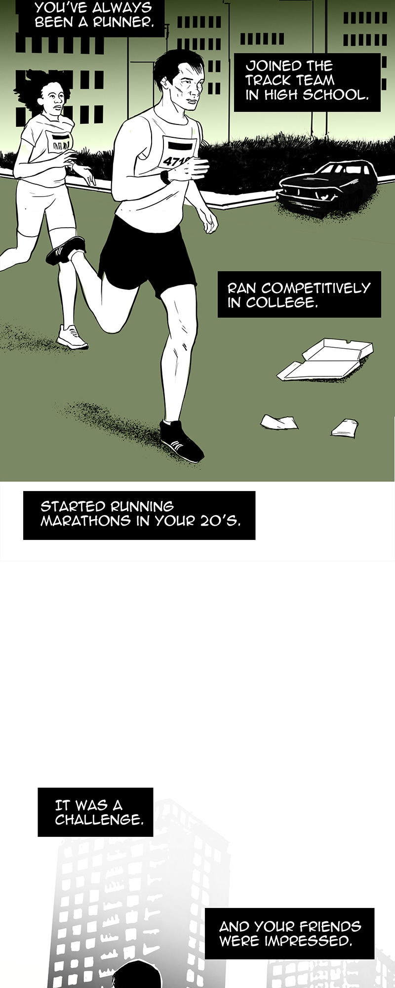 A marathon runner goes the extra mile.