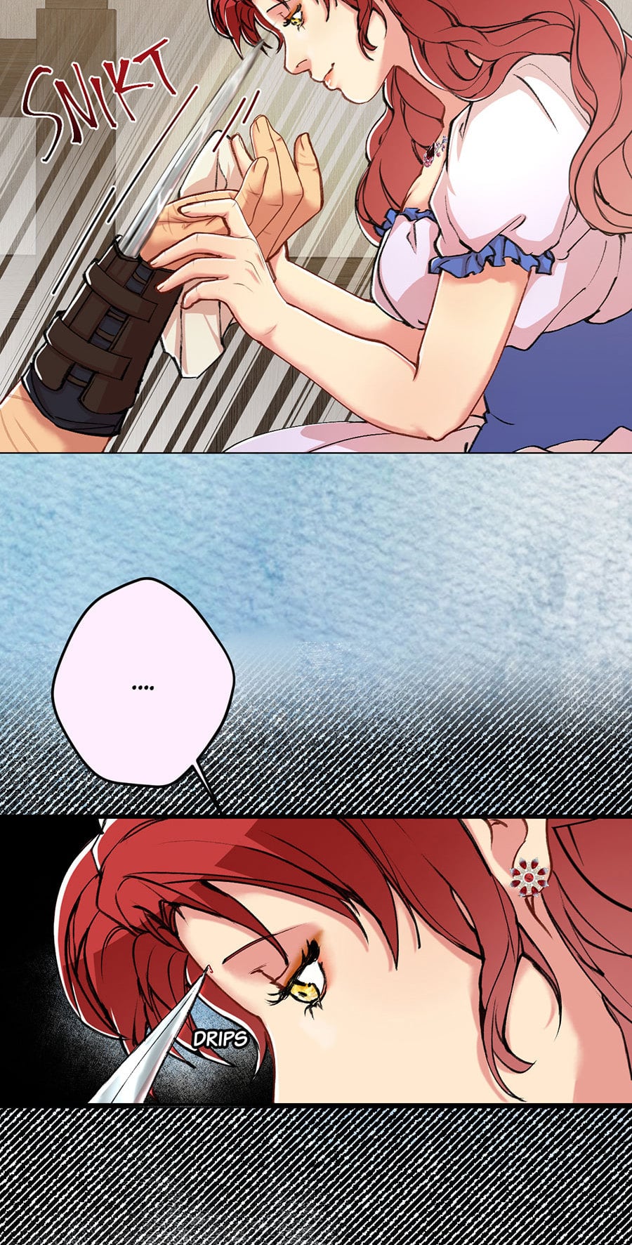 Don't lose focus, Sofia! or your life is at stake (look at your forehead almost stuck with his dagger) -_-