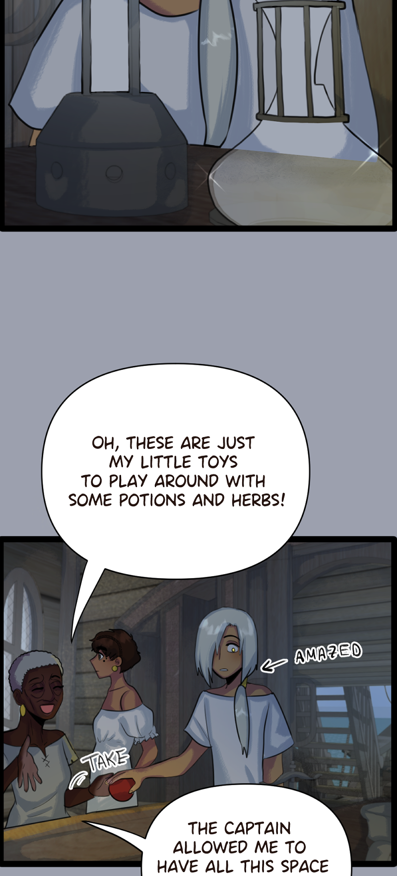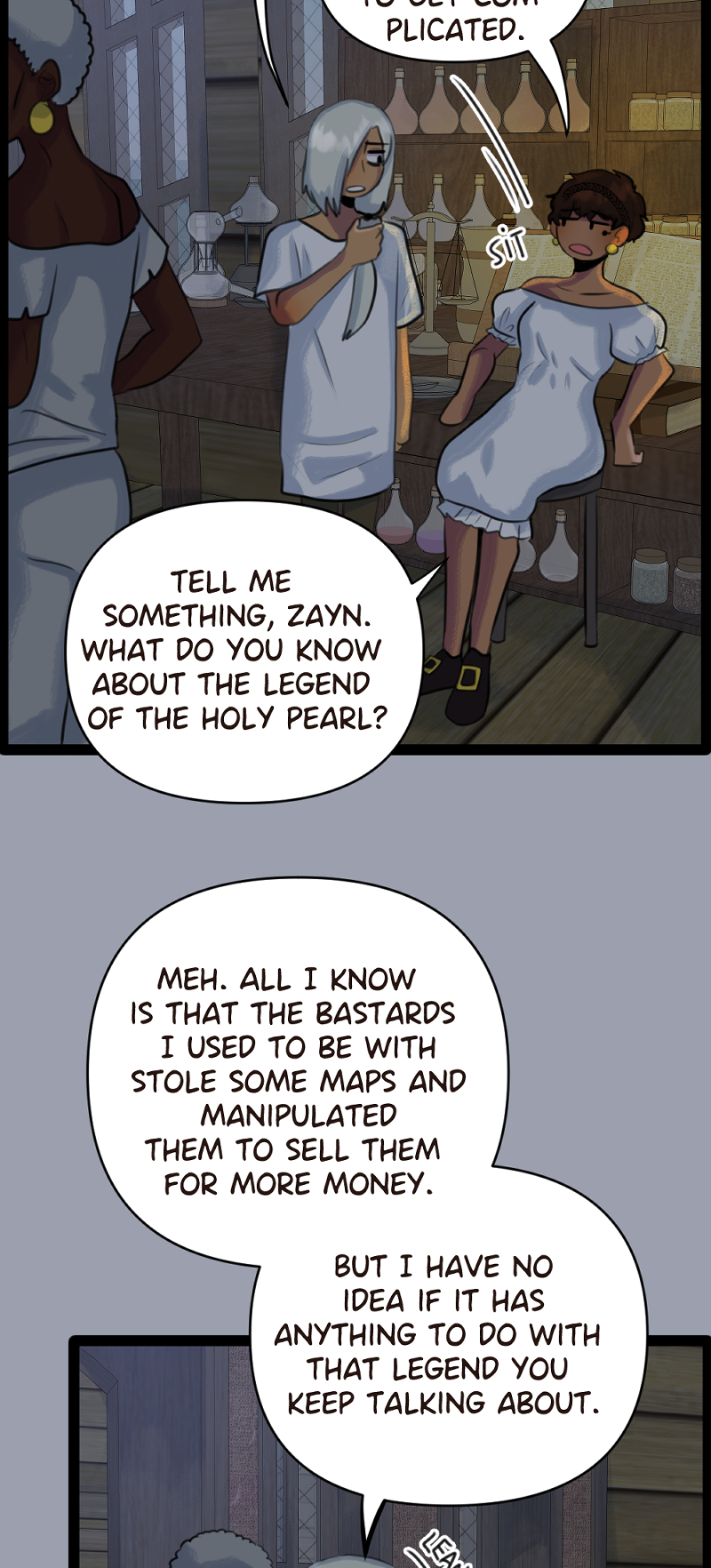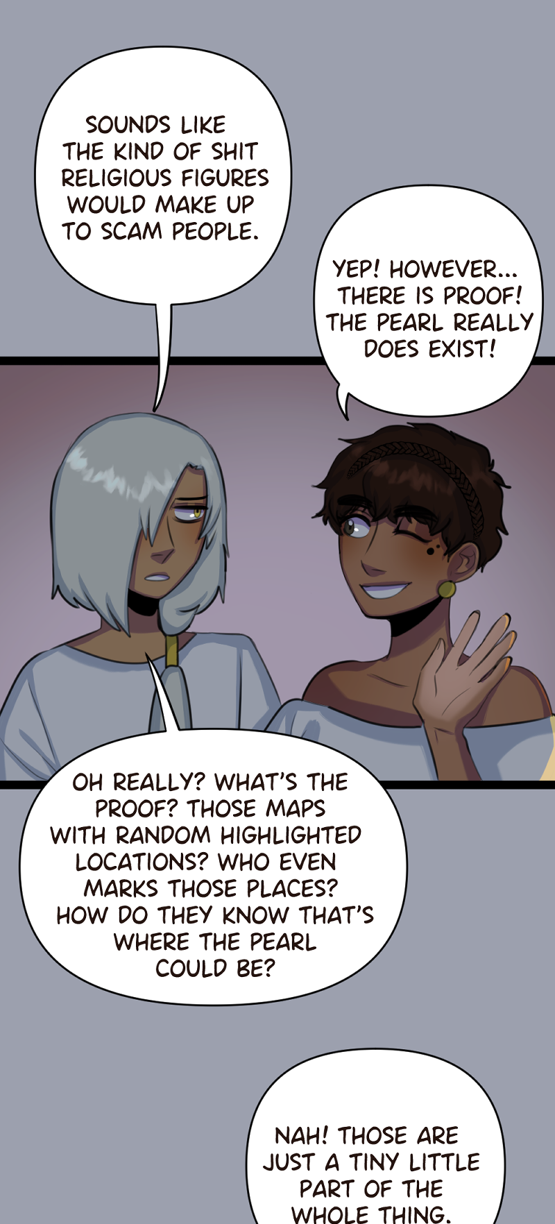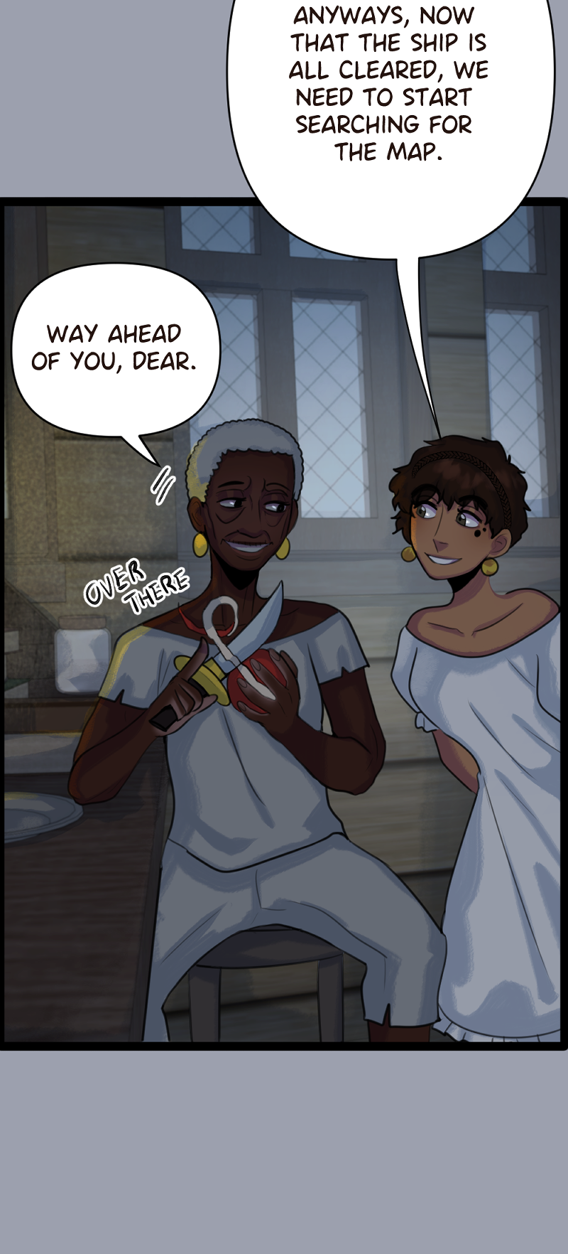 (SLOW BURN, LGBT+) Yasmin is a pirate who's obsessed with The Legend of the Holy Pearl, which says that this desirable treasure is supposed to be in the dephts of the sea. Her father, the captain of their ship, is just a grumpy man who doesn't care about legends at all. He only focuses on stealing, surviving... and leaving behind his mysterious past. Will Yasmin ever progress with her goal of finding the Holy Pearl? CW: strong language, slavery and depictions of abuse and violence.