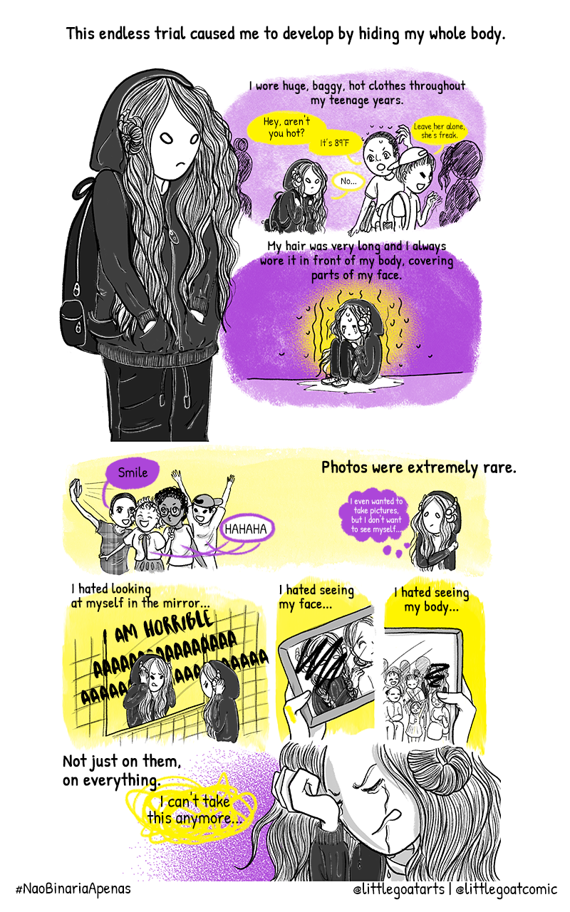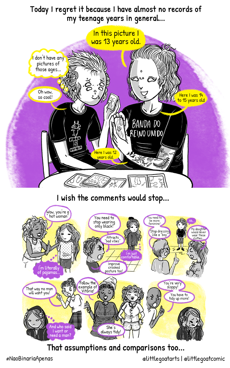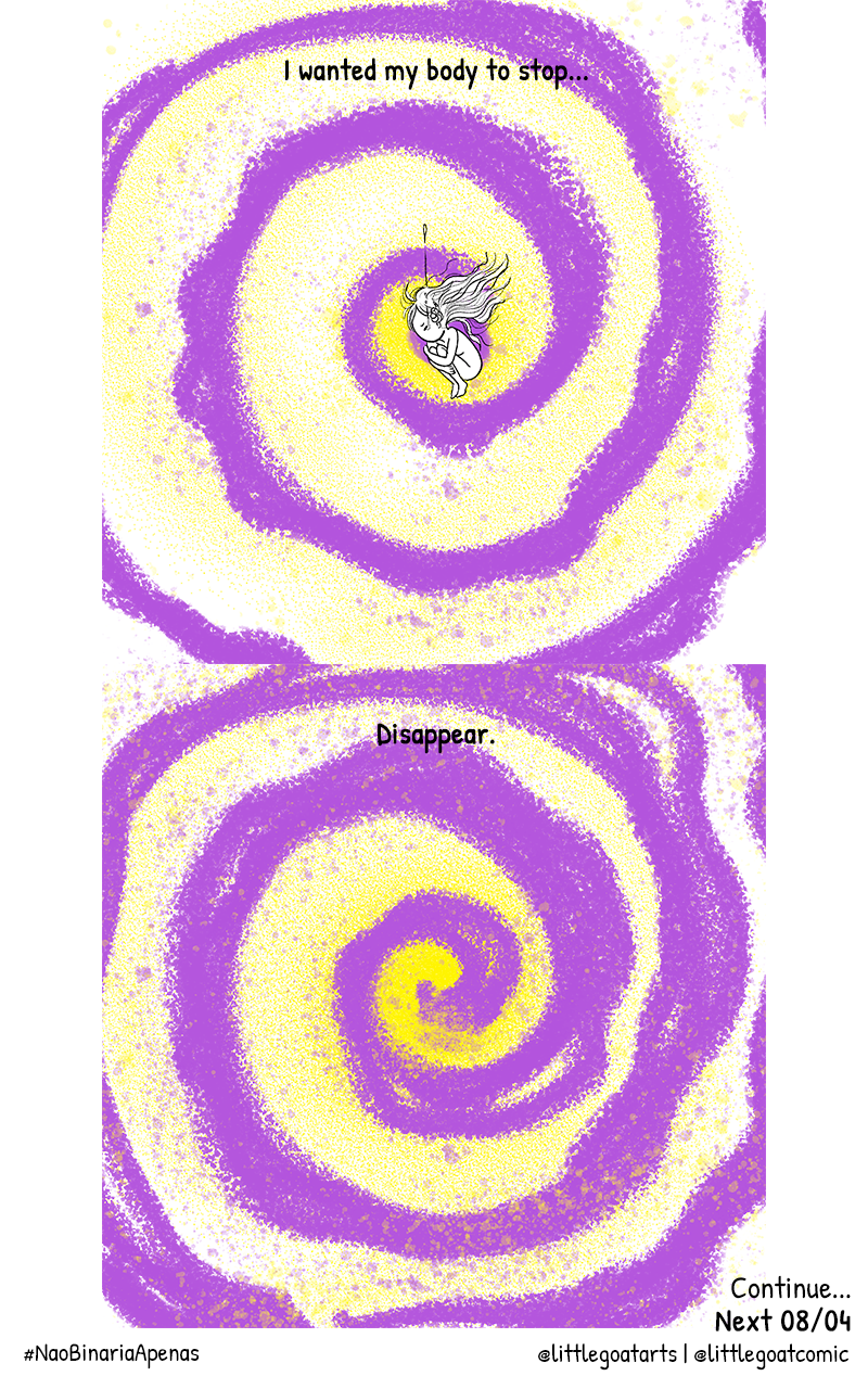 A história autobiografia contará a experiência e percepção da autora enquanto pessoa não-binária, um processo longo e de grande confusão, que sendo sincera!? Quando acaba?